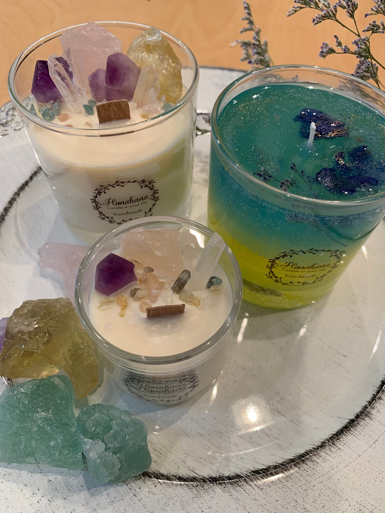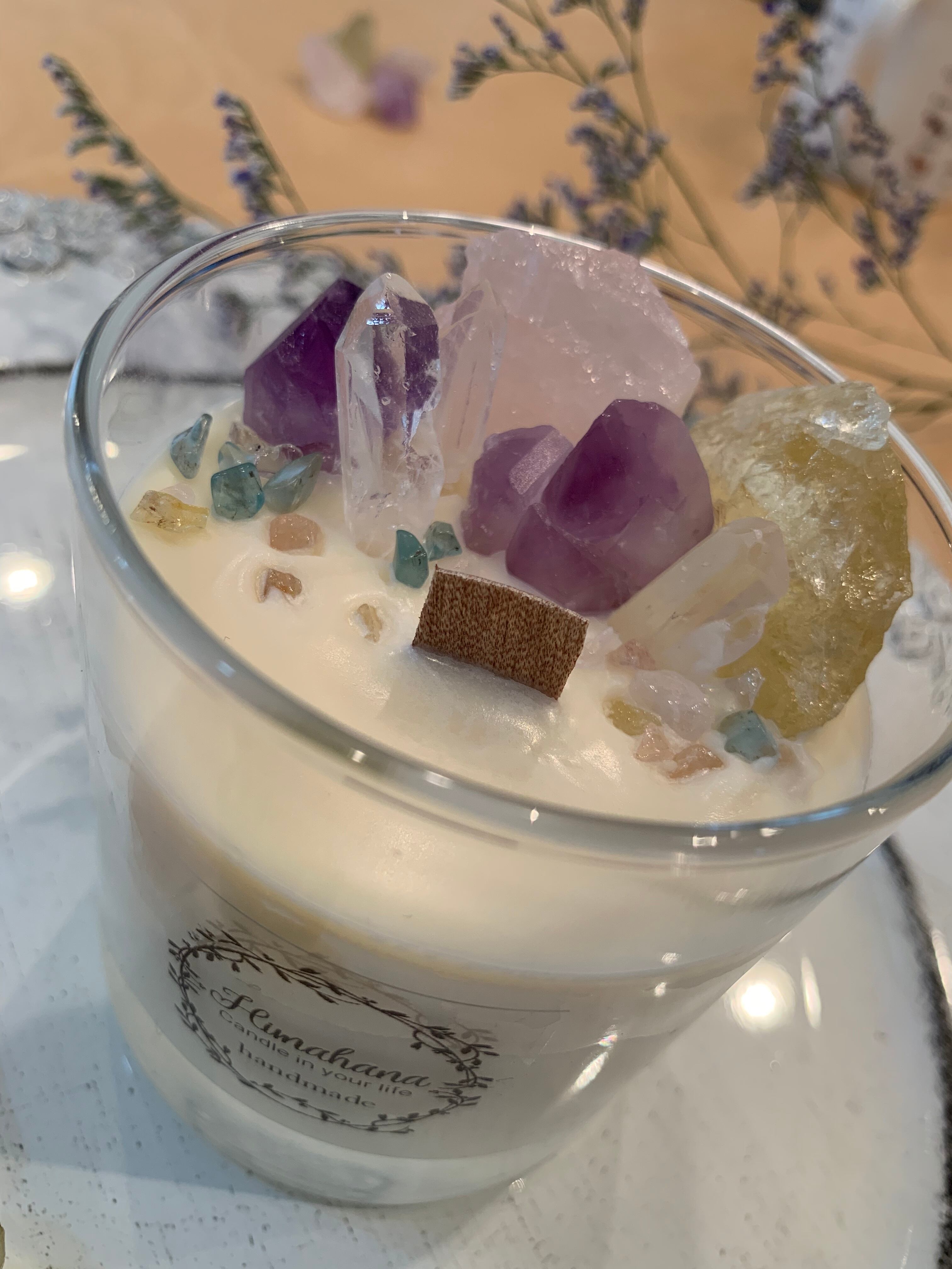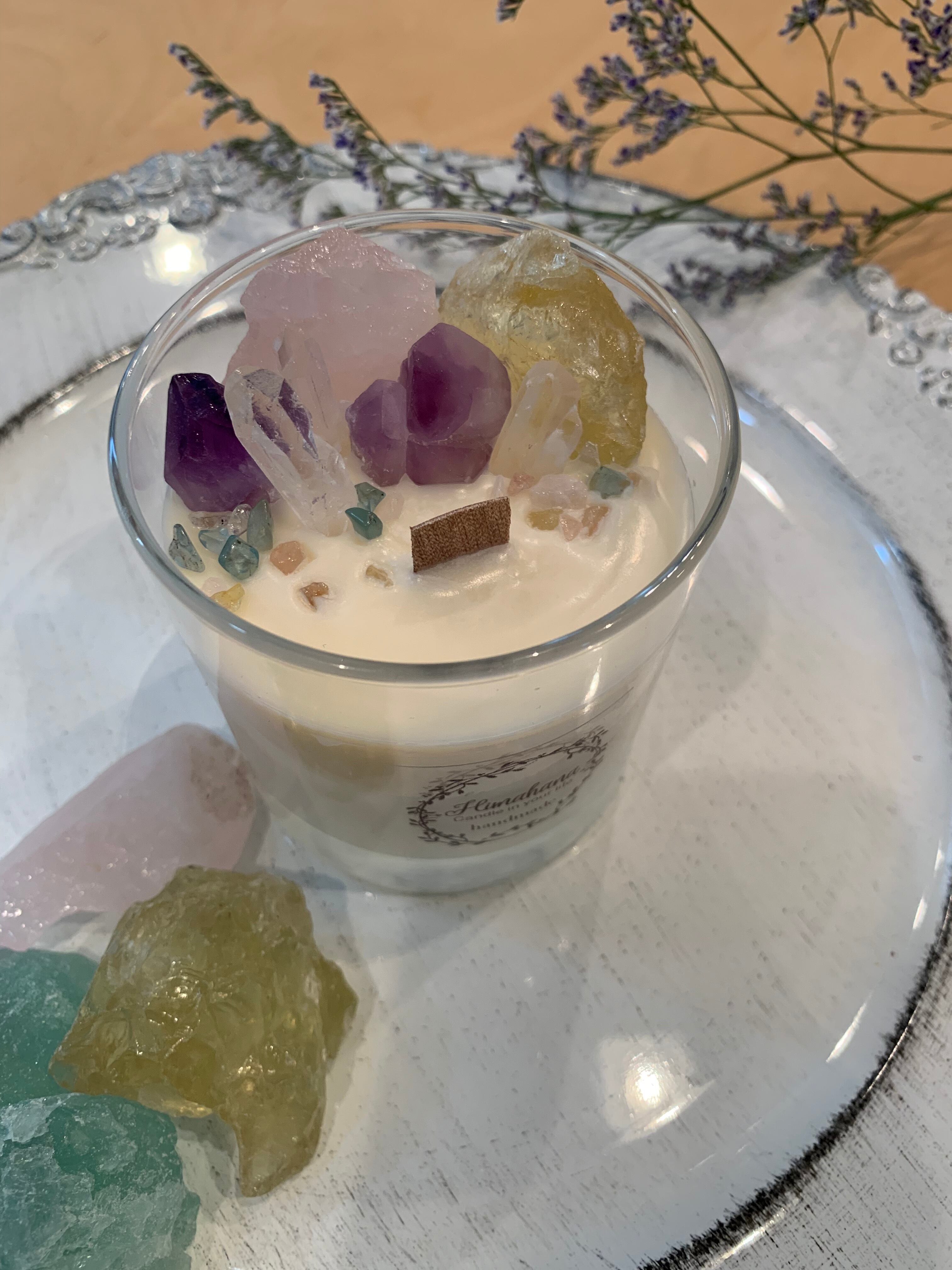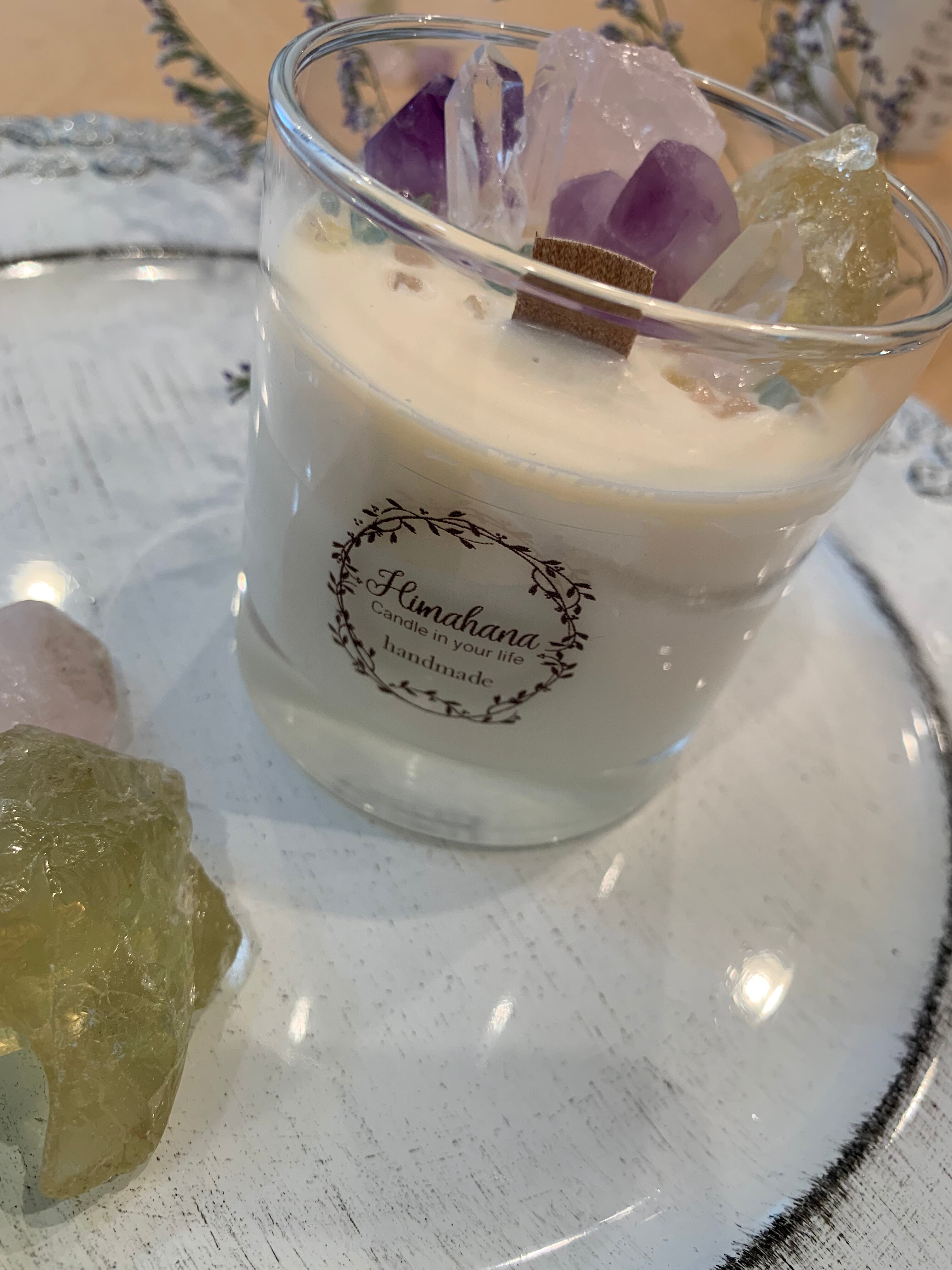 100%のソイキャンドルに、天然石をたっぷり詰め込みました♡