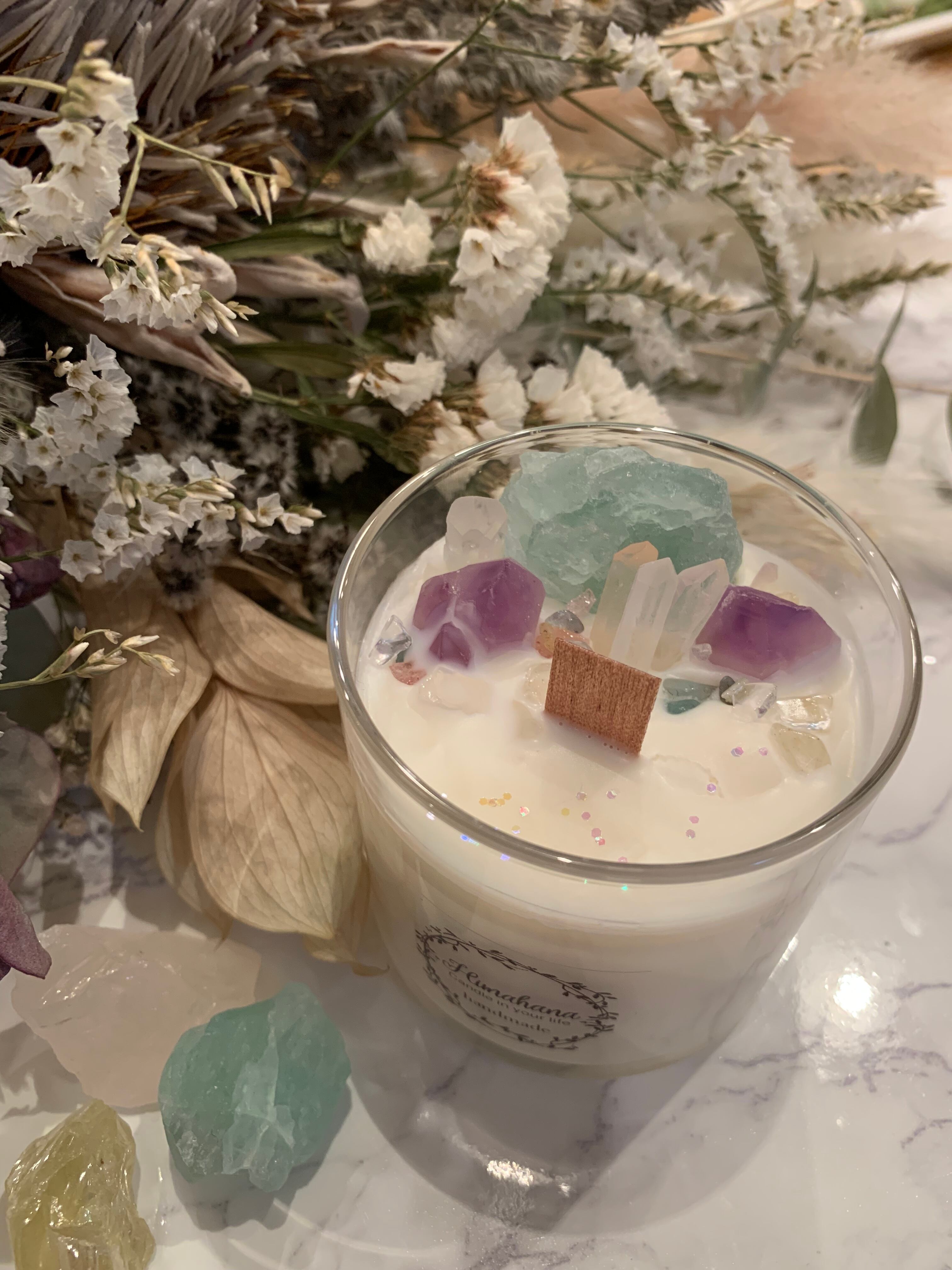 100%のソイキャンドルに、天然石をたっぷり詰め込みました♡