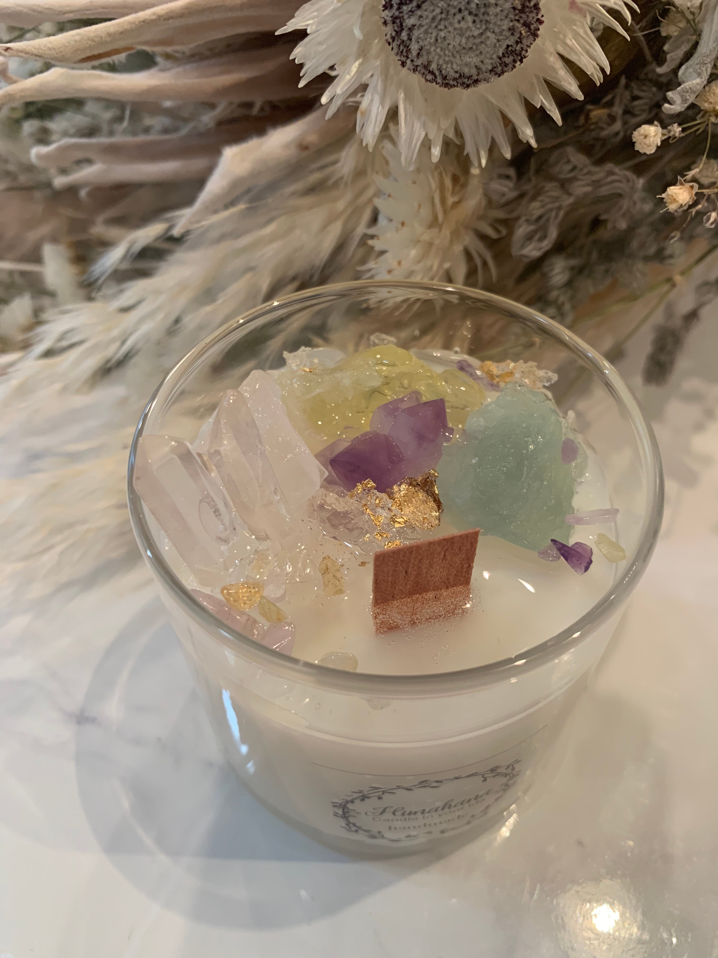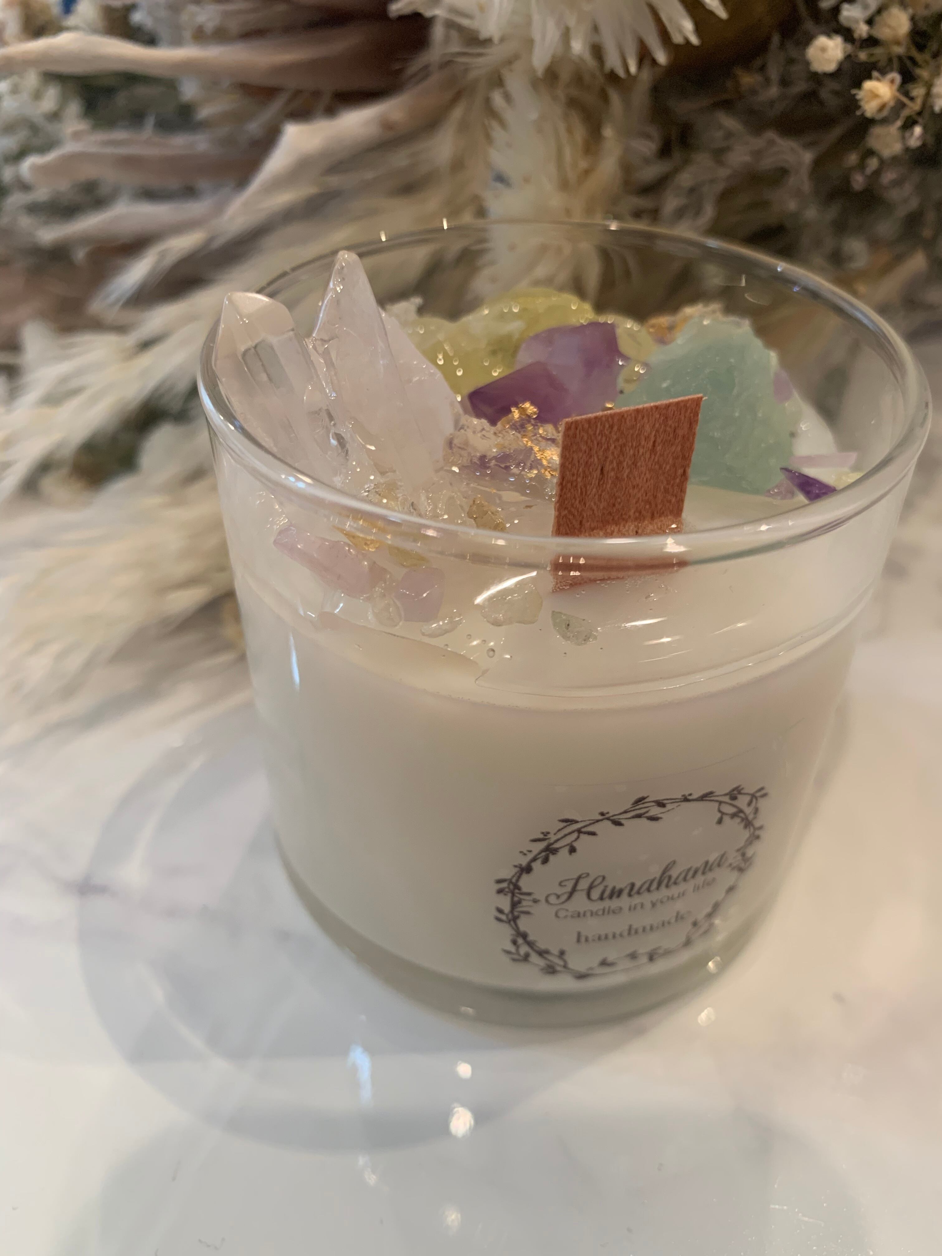 100%のソイキャンドルに、天然石をたっぷり詰め込みました♡