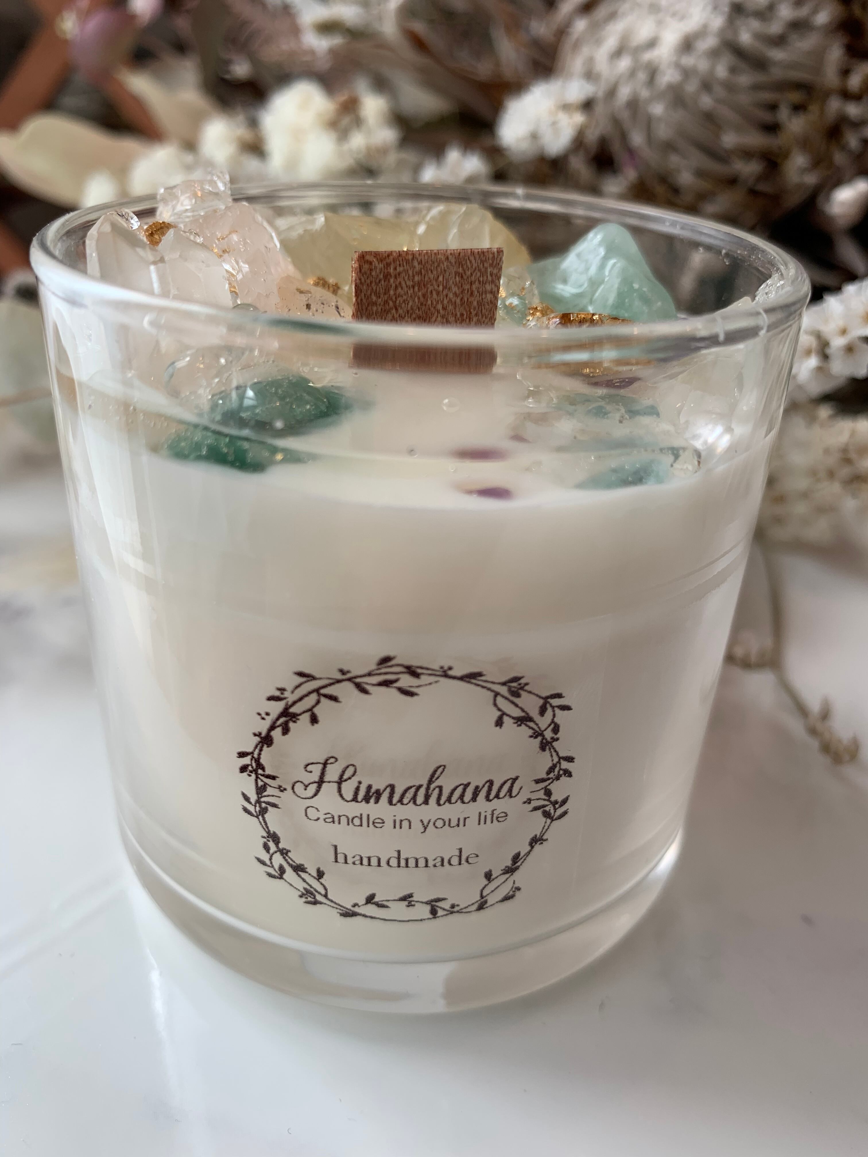 100%のソイキャンドルに、天然石をたっぷり詰め込みました♡