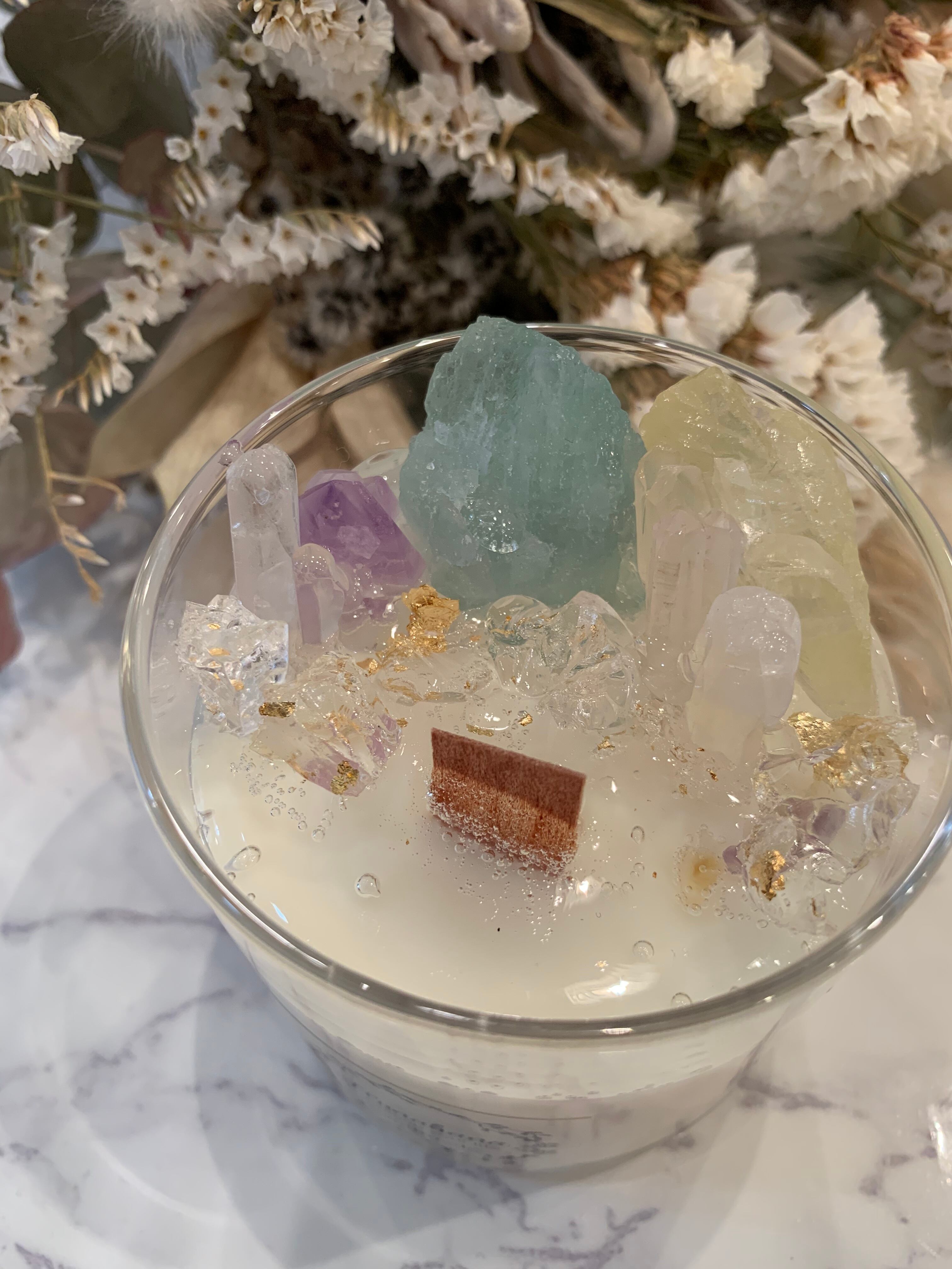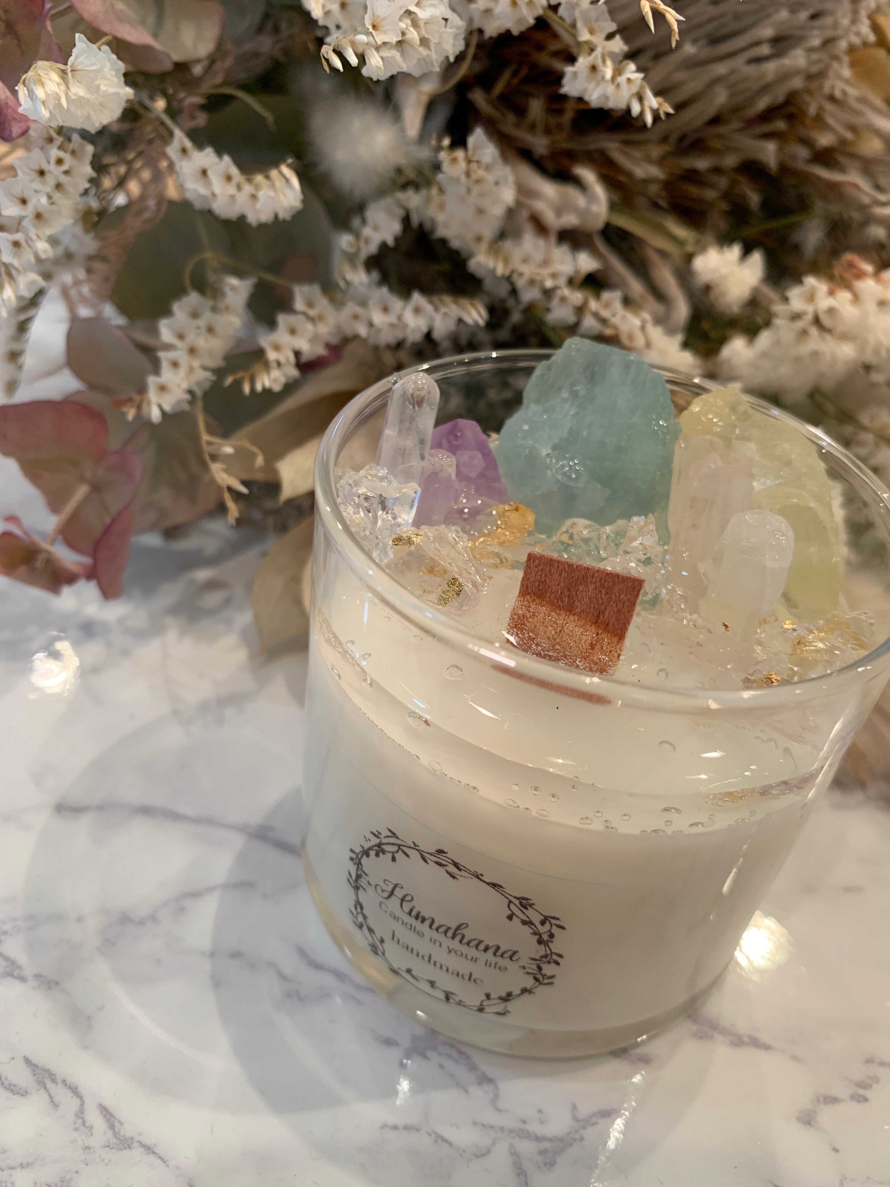100%のソイキャンドルに、天然石をたっぷり詰め込みました♡