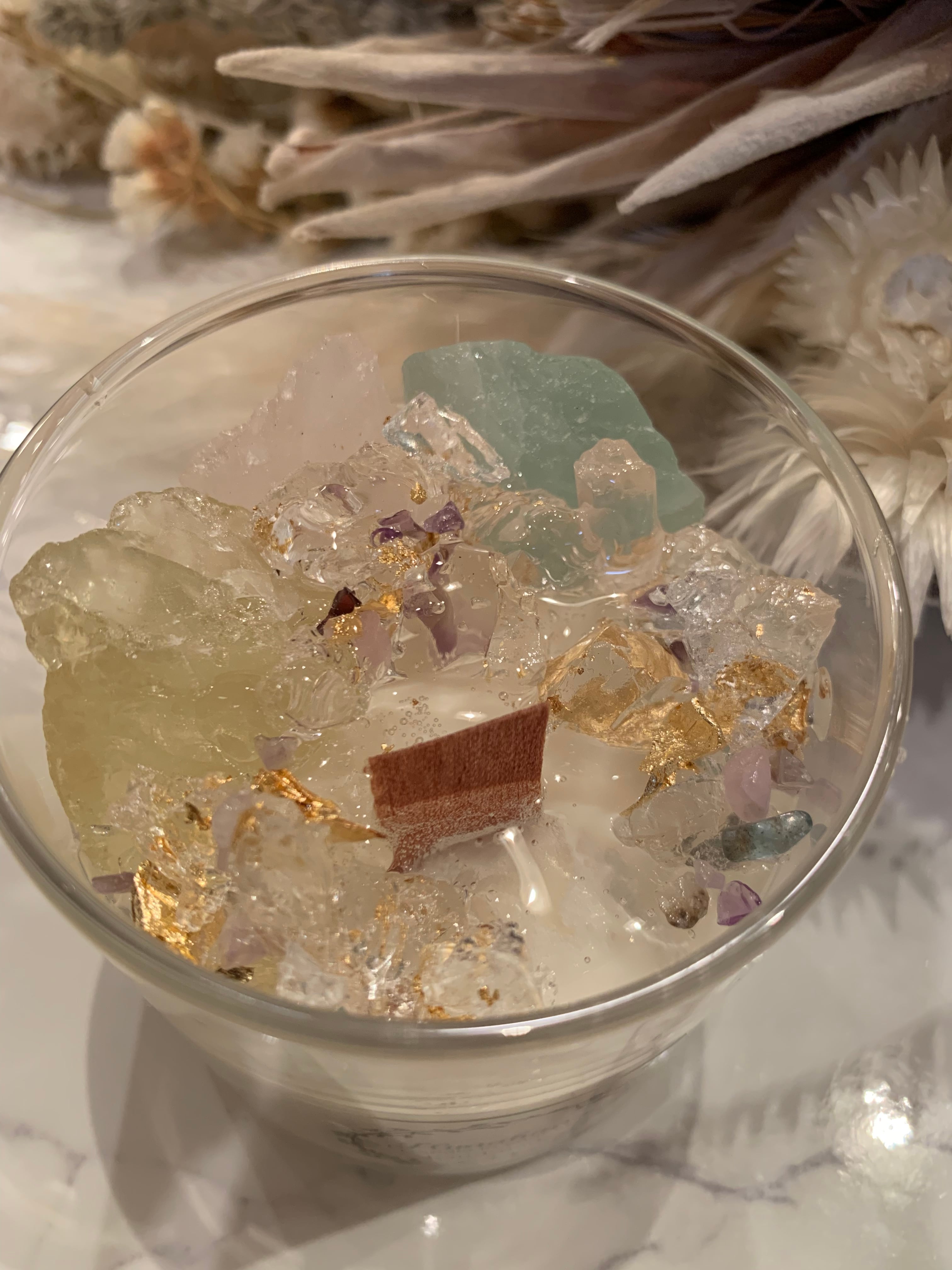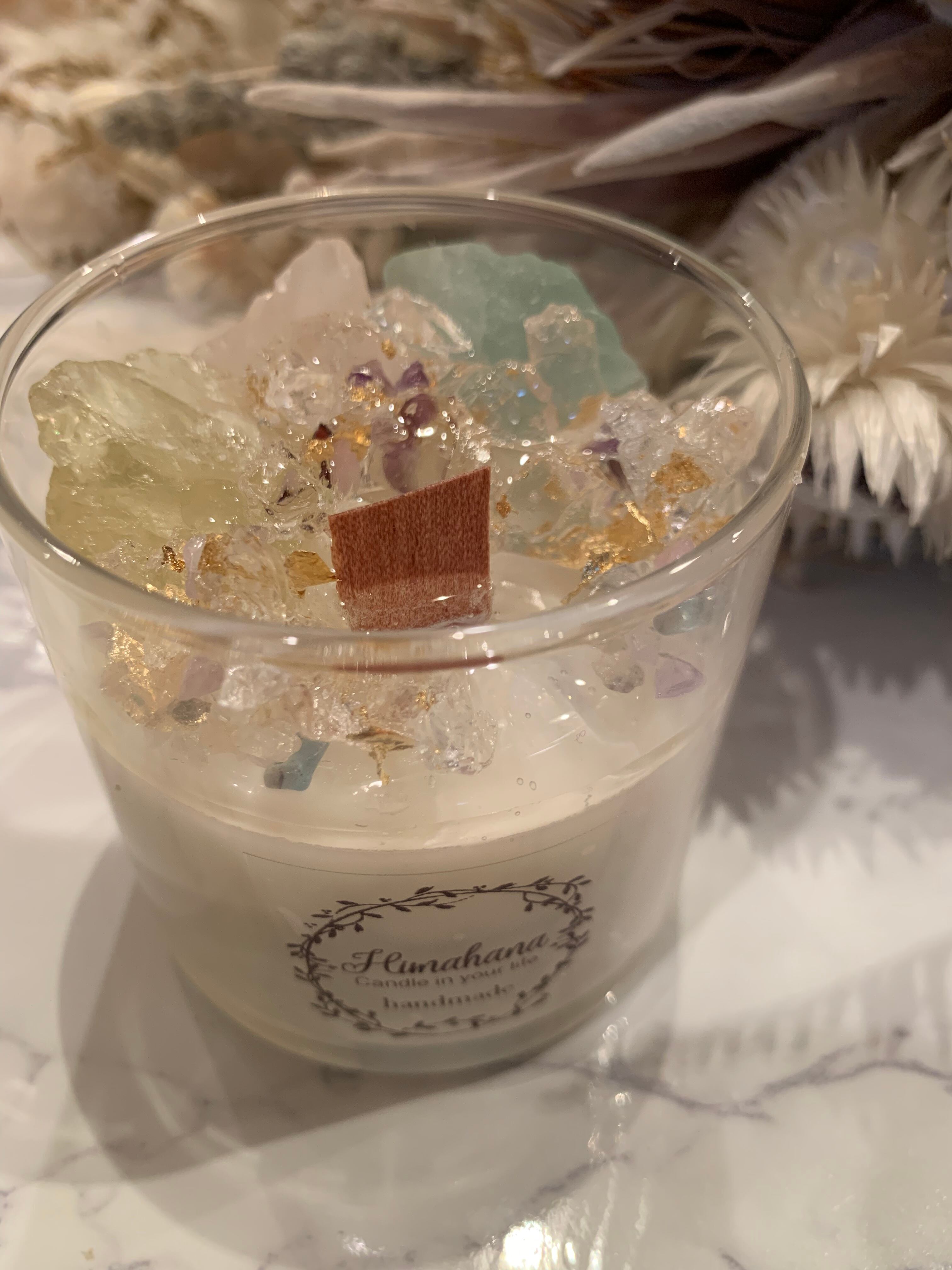 100%のソイキャンドルに、天然石をたっぷり詰め込みました♡