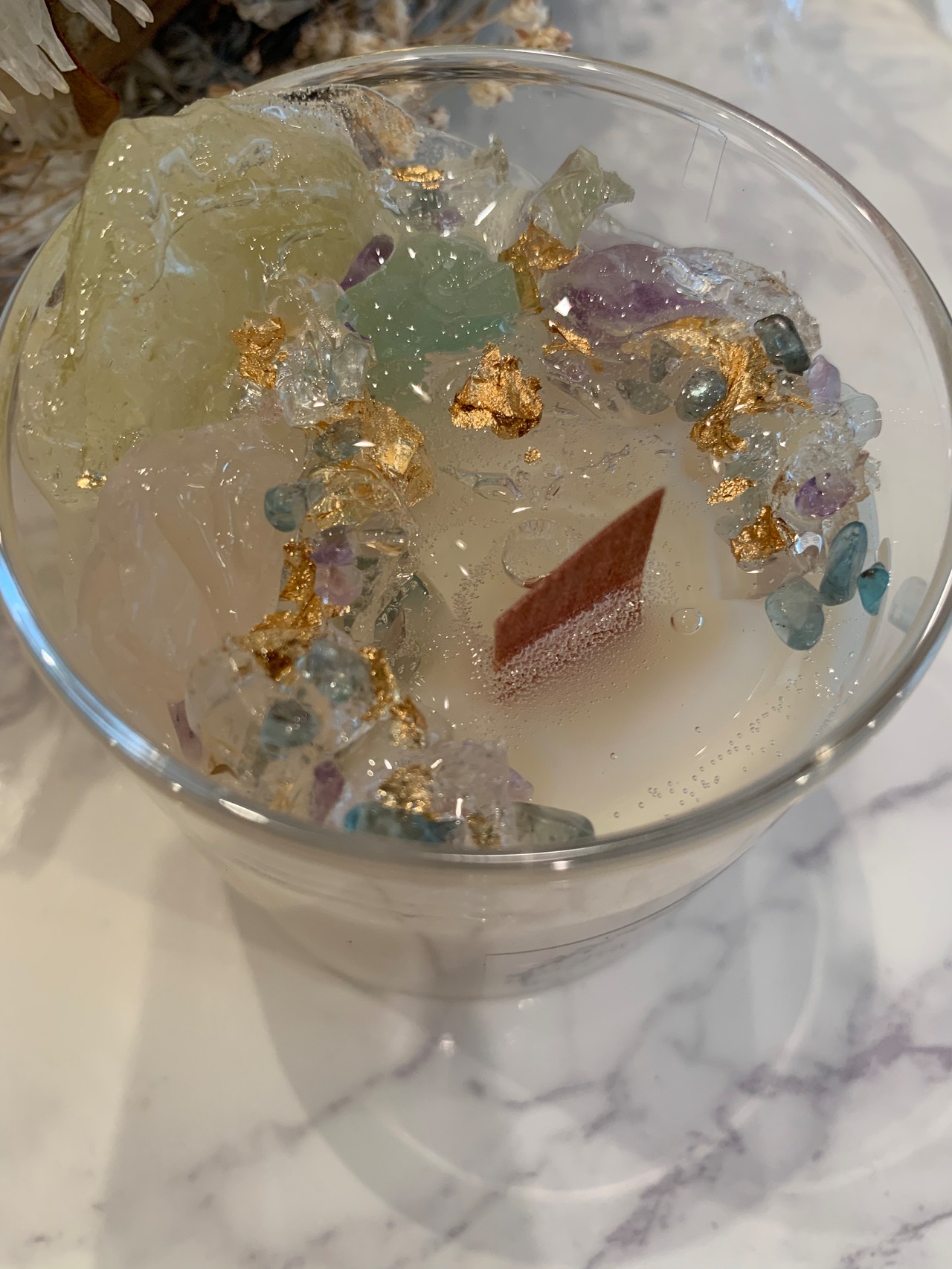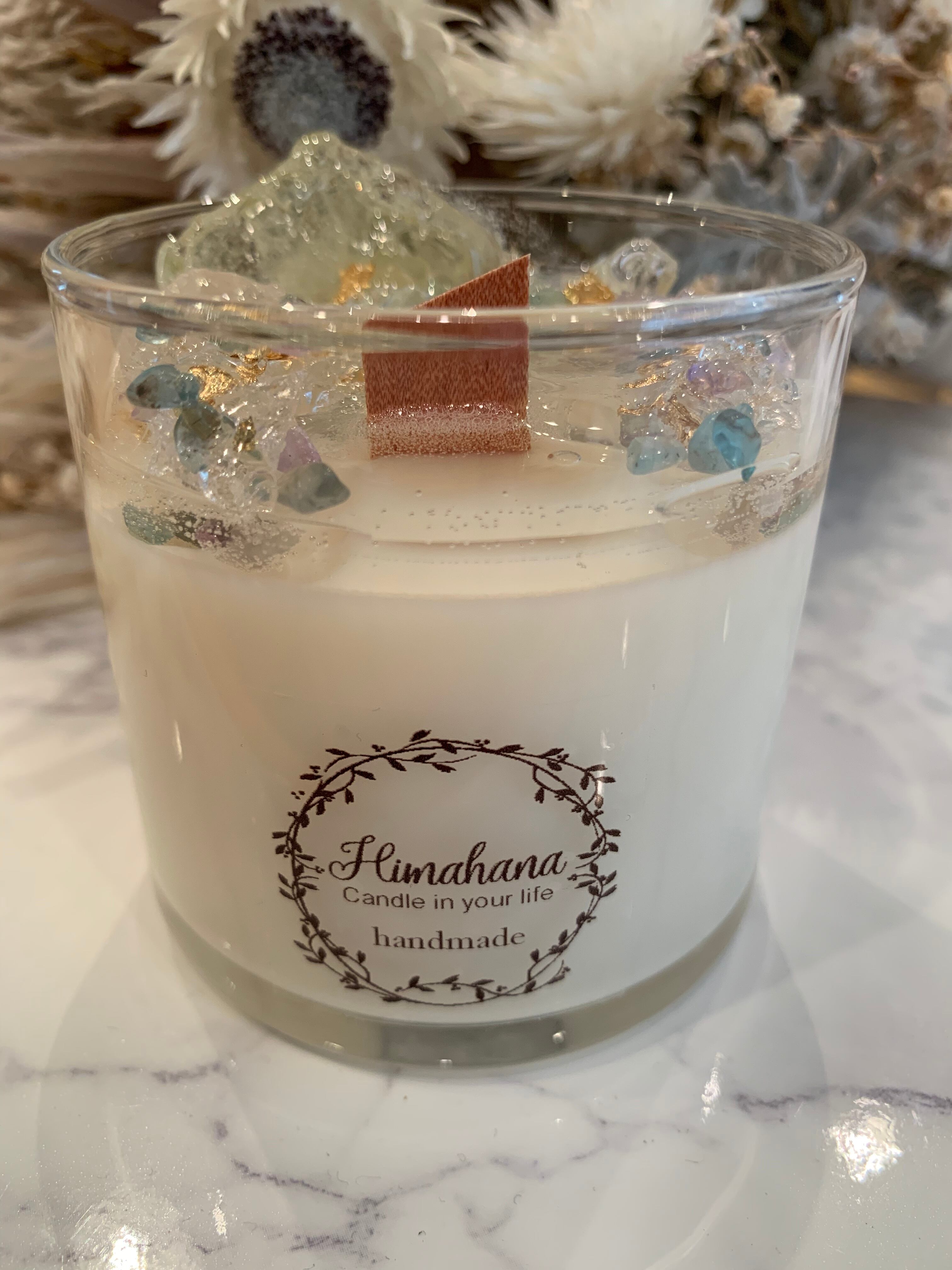 100%のソイキャンドルに、天然石をたっぷり詰め込みました♡