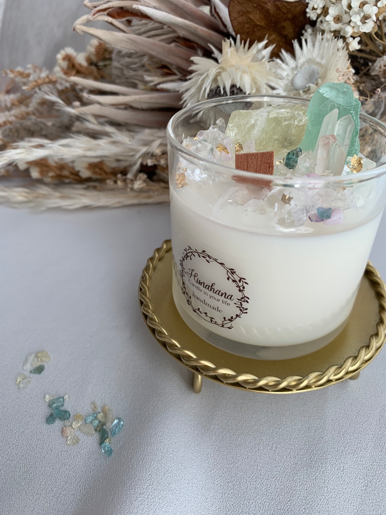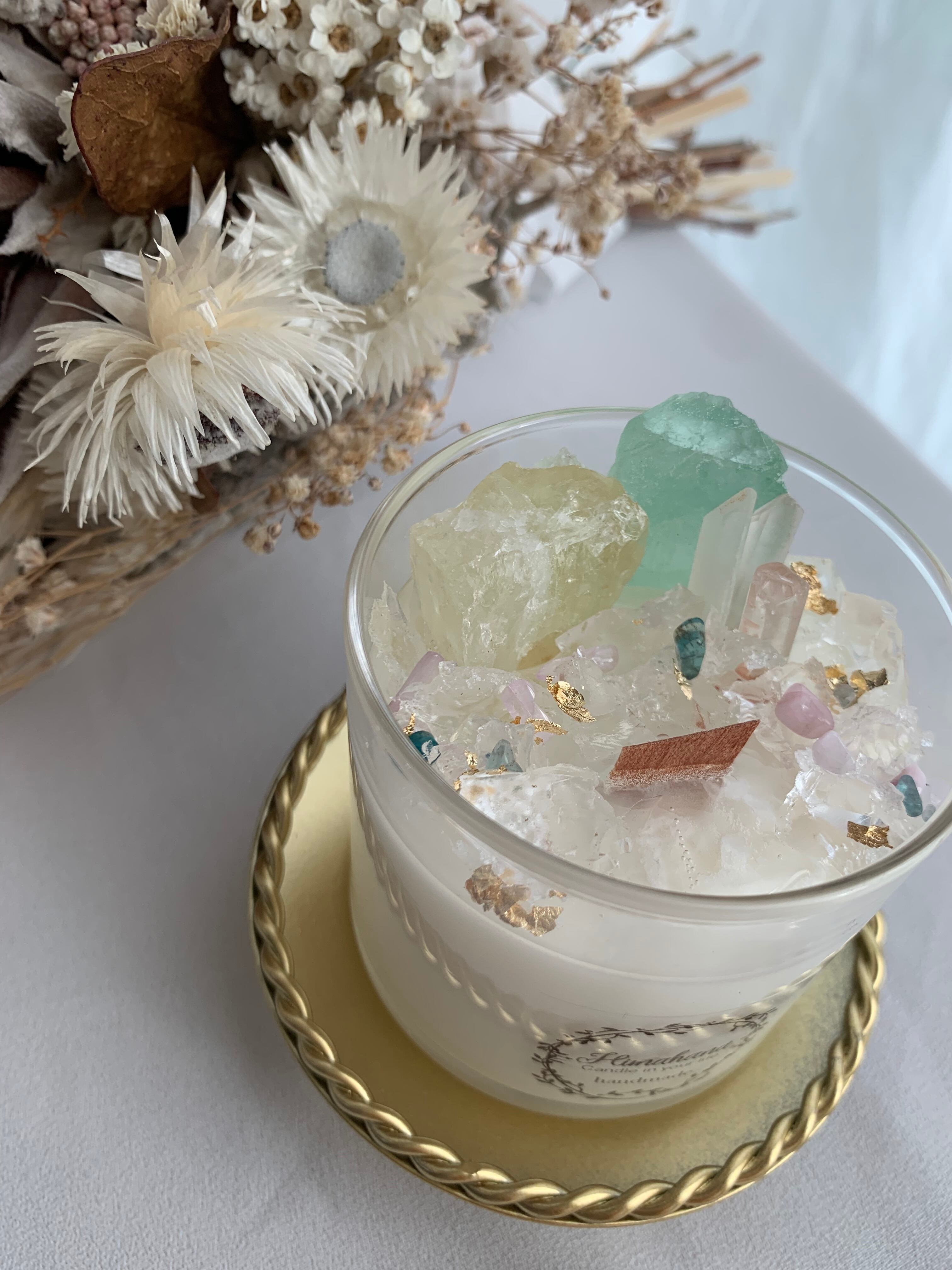 100%のソイキャンドルに、天然石をたっぷり詰め込みました♡