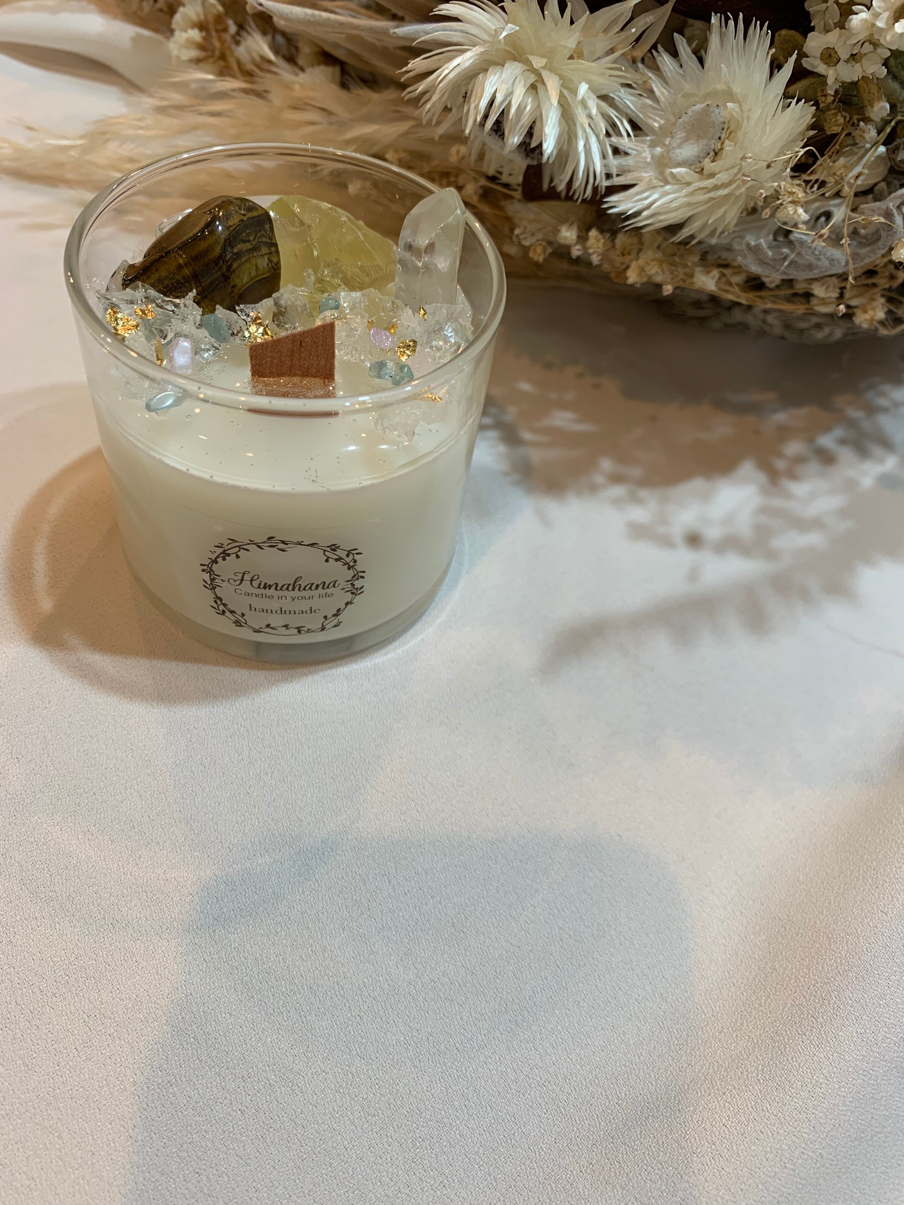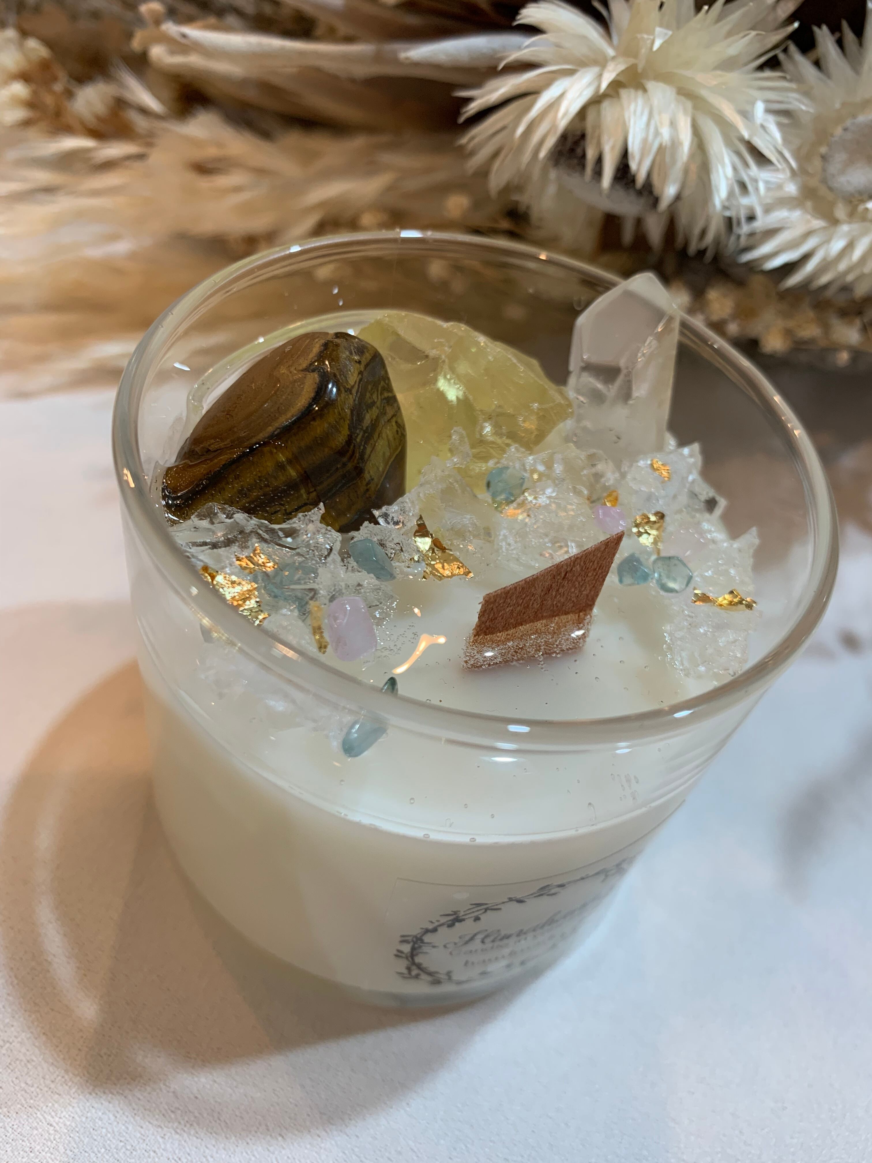 100%のソイキャンドルに、天然石をたっぷり詰め込みました♡
