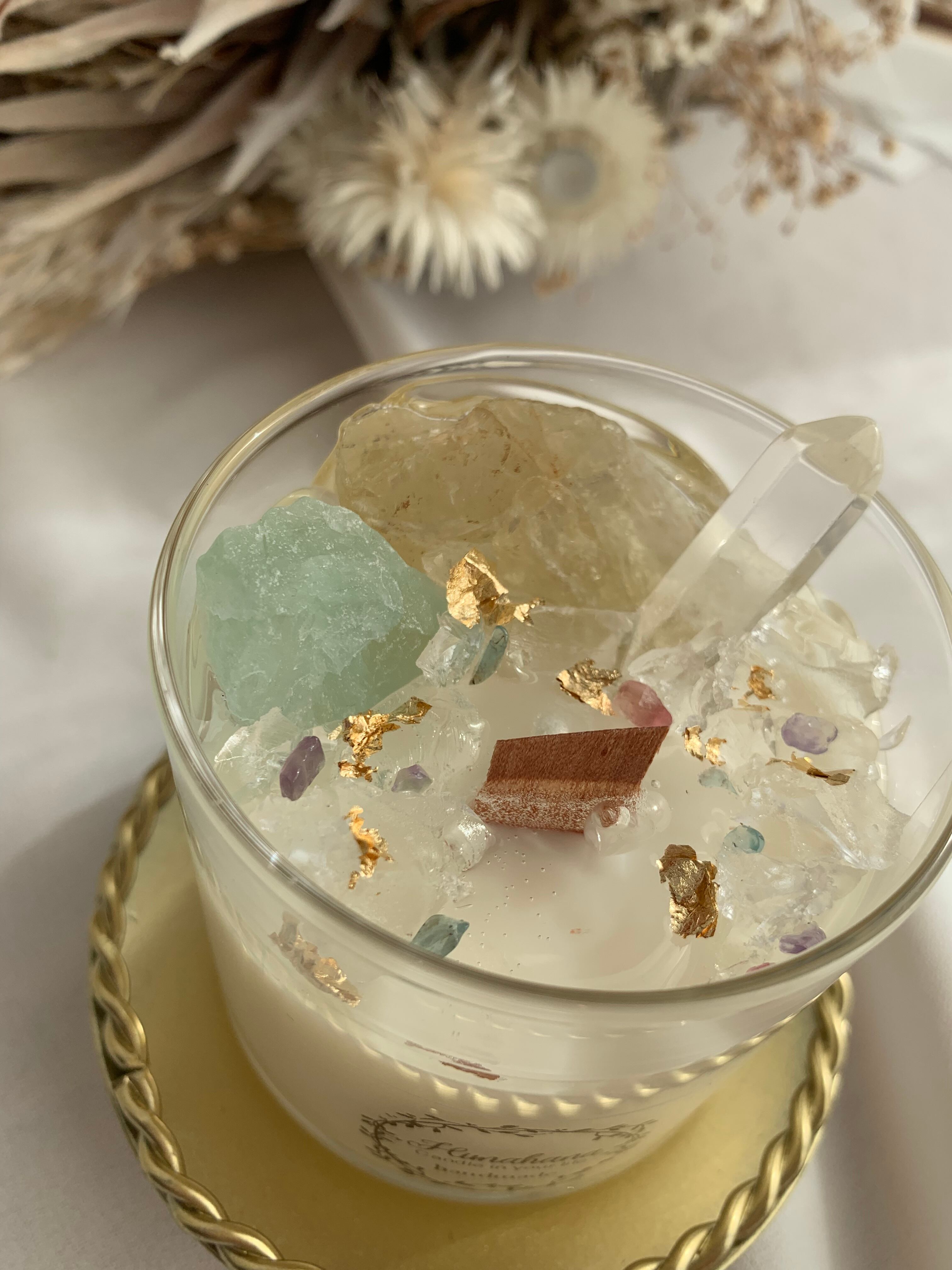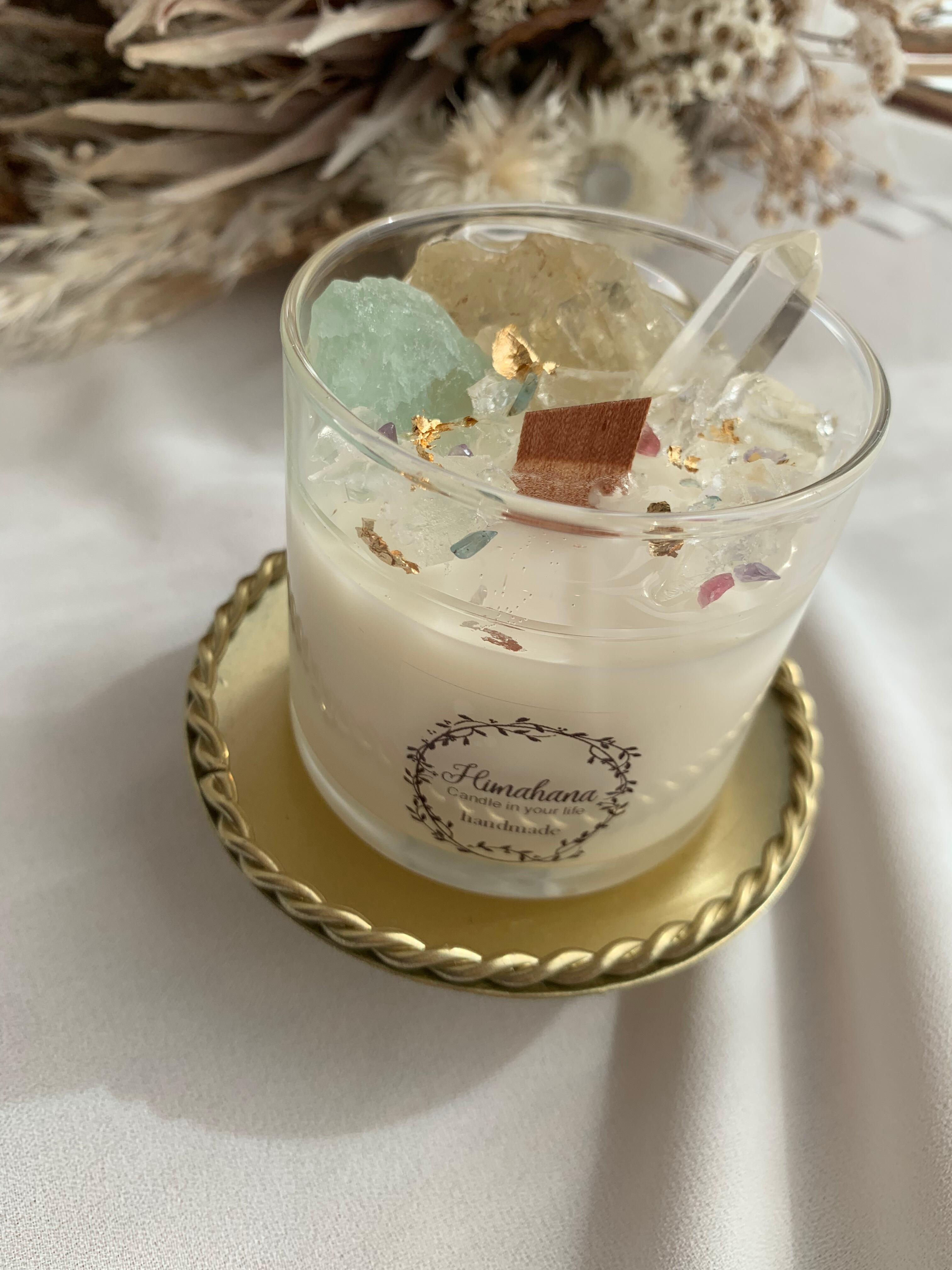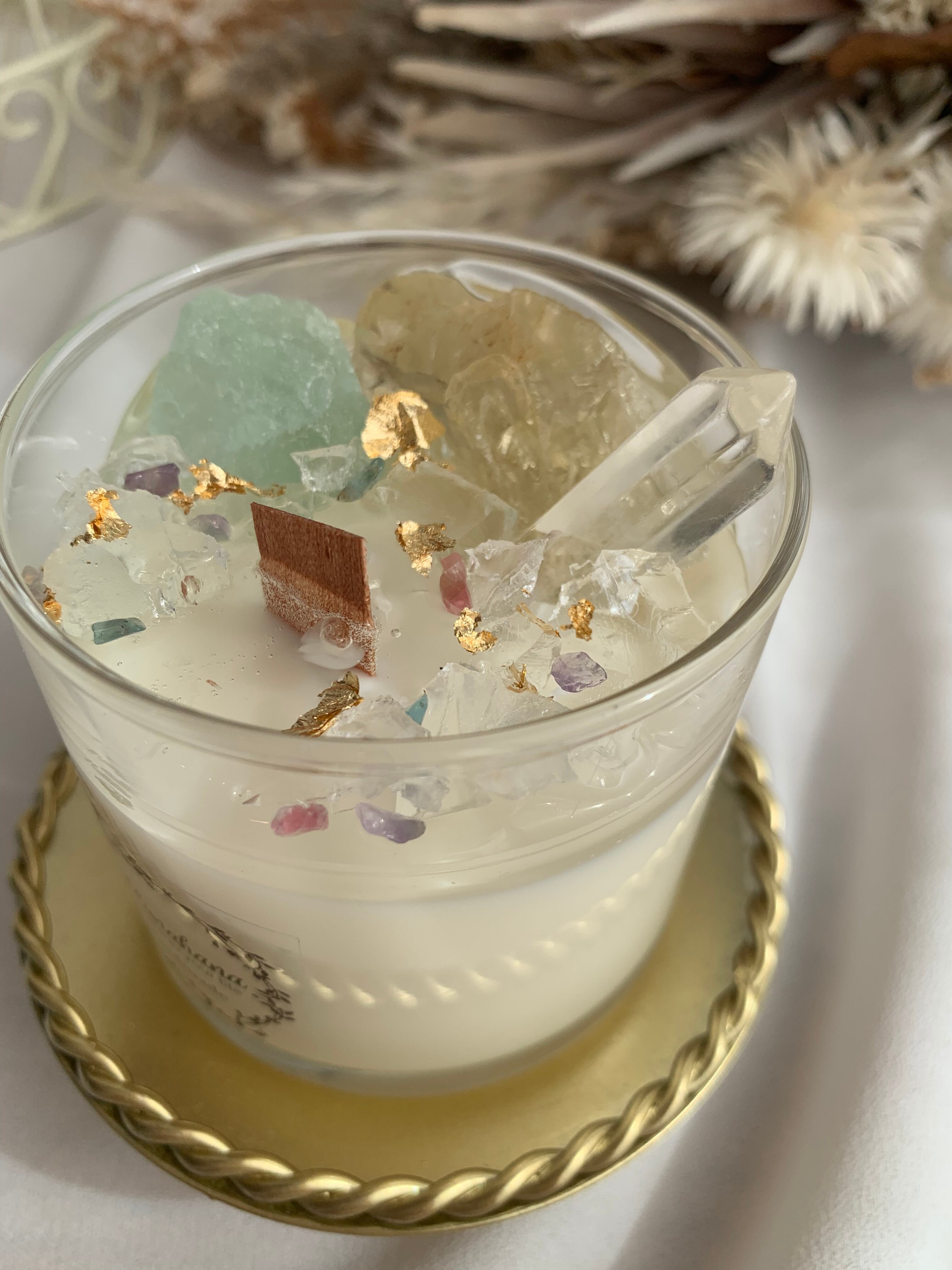 100%のソイキャンドルに、天然石をたっぷり詰め込みました♡