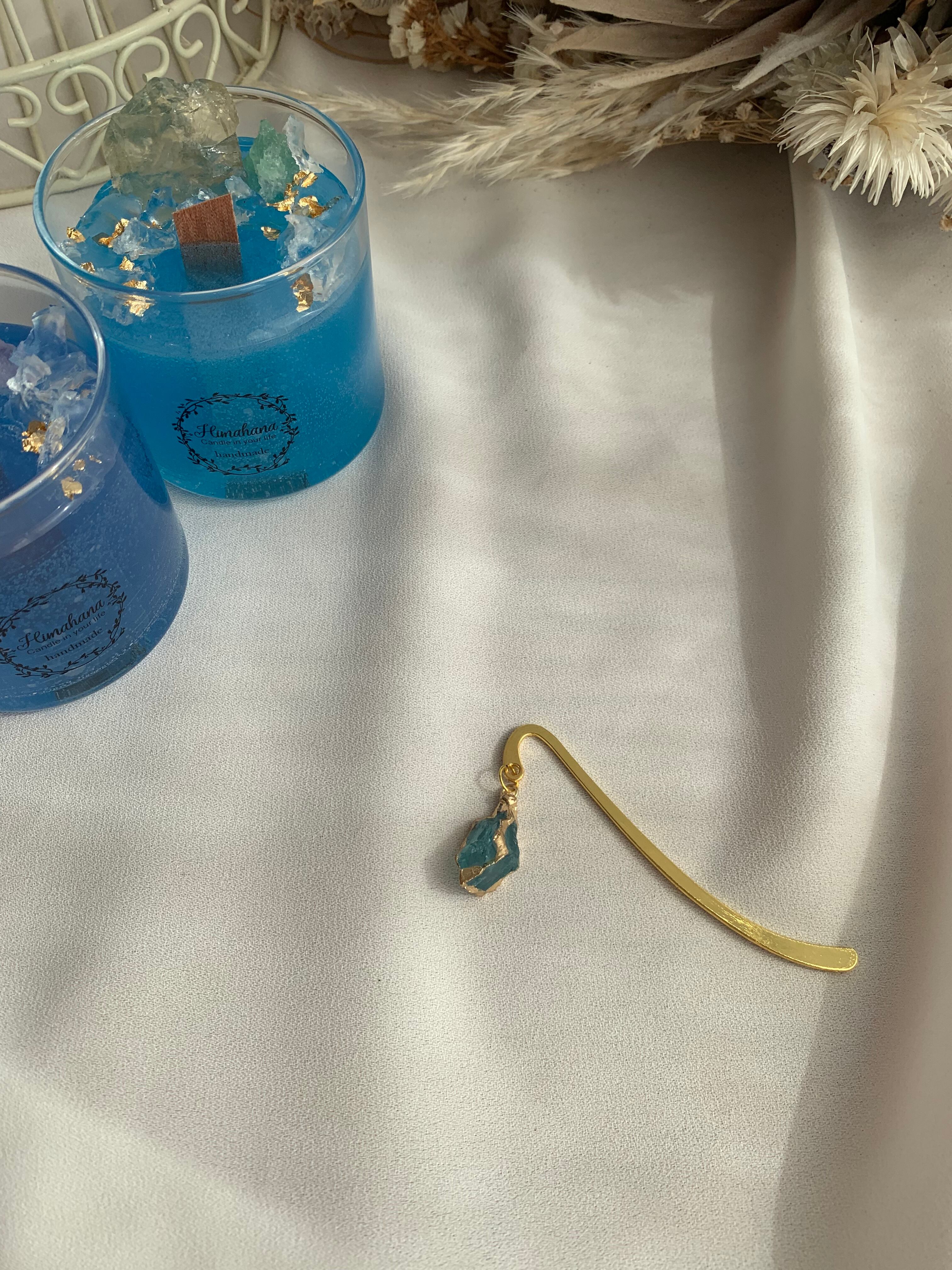 ブルーアパタイトが揺れるブックマーカー(本の栞)です✨