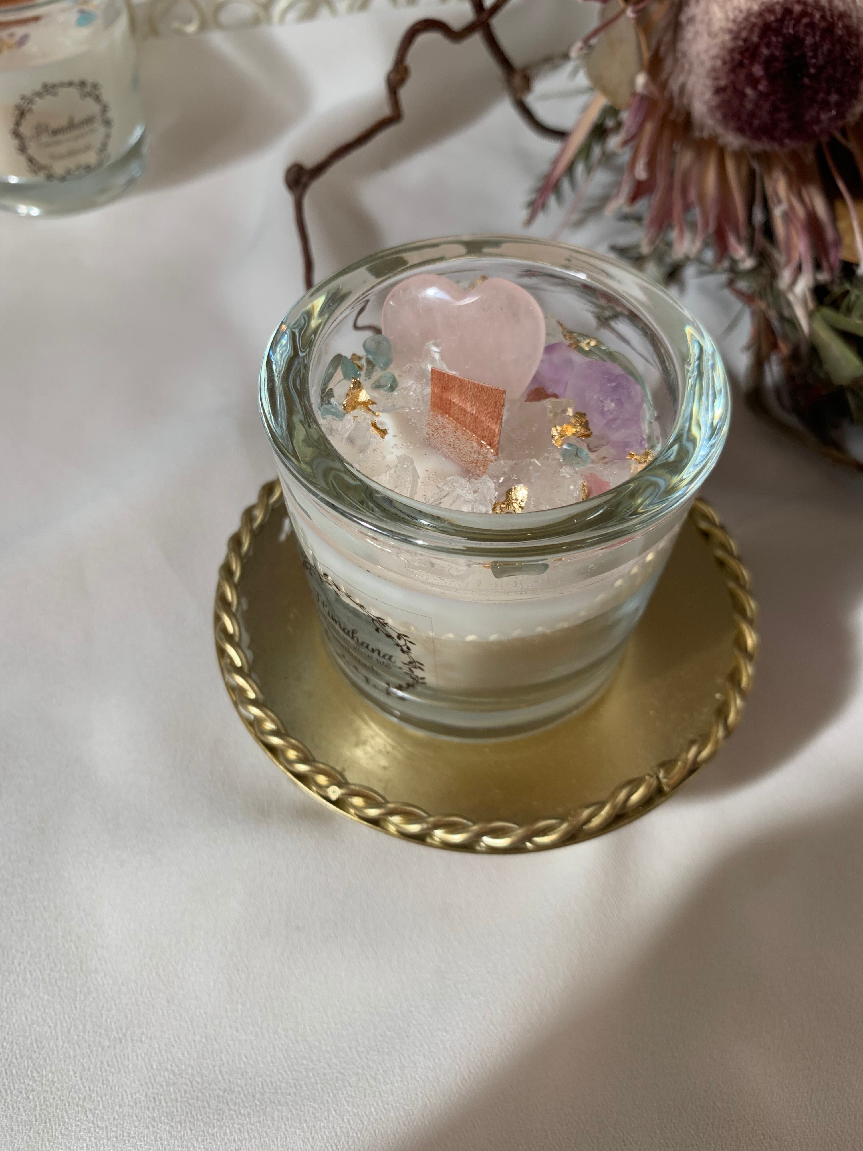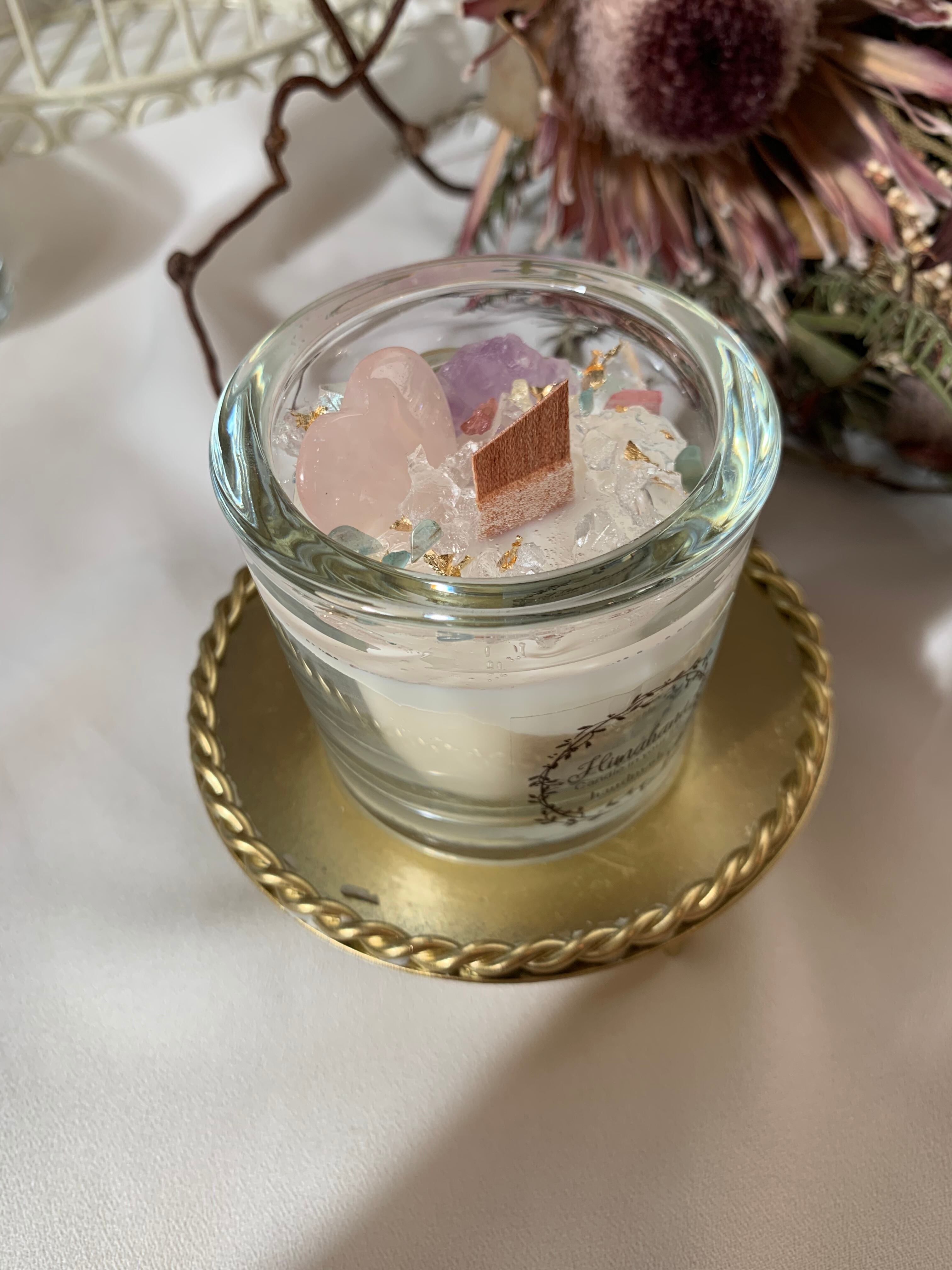 100%のソイキャンドルに、天然石をたっぷり詰め込みました♡