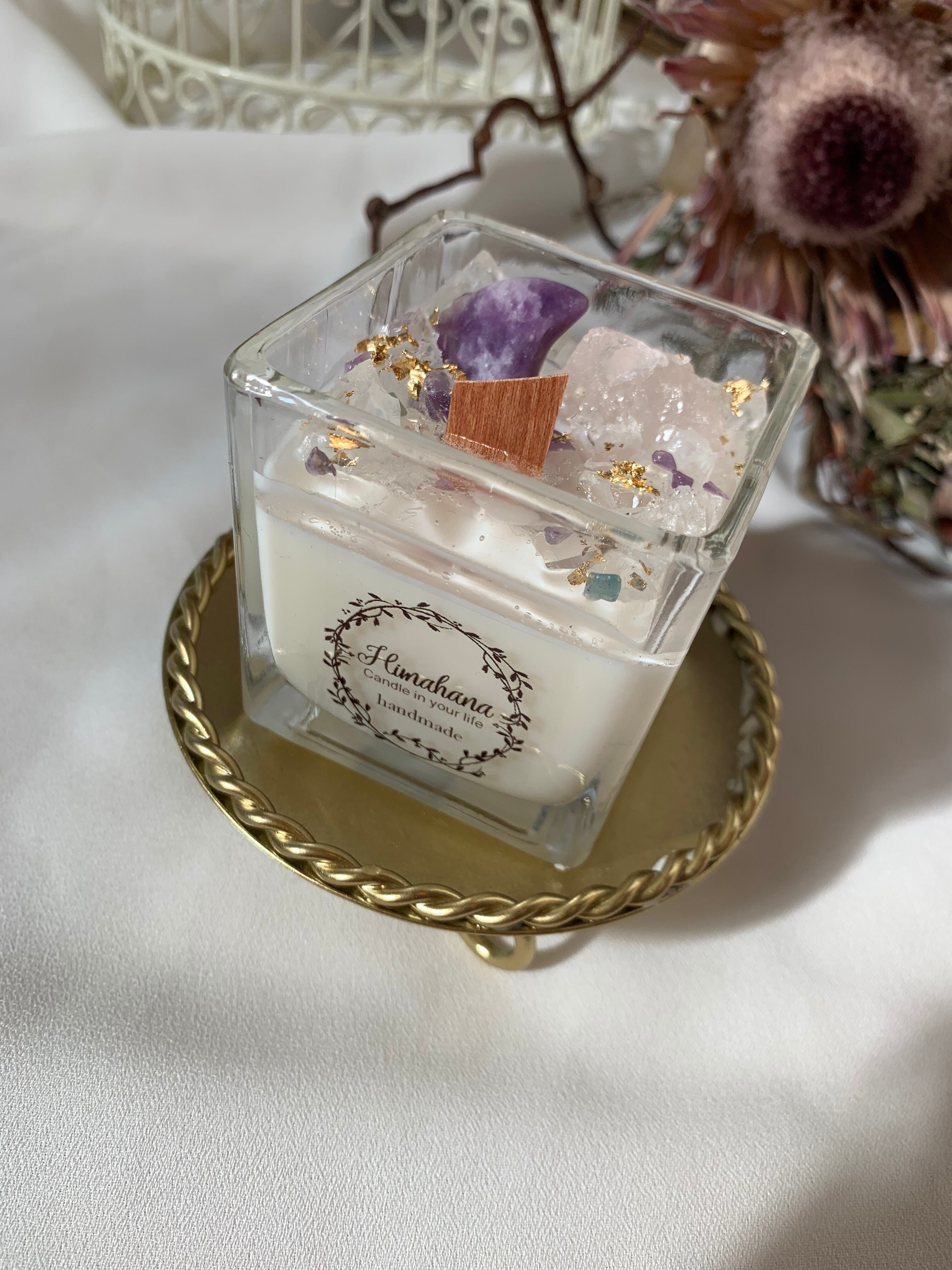 100%のソイキャンドルに、天然石をたっぷり詰め込みました♡