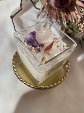 月型アメジストとローズクォーツのミニキャンドルスクエア型