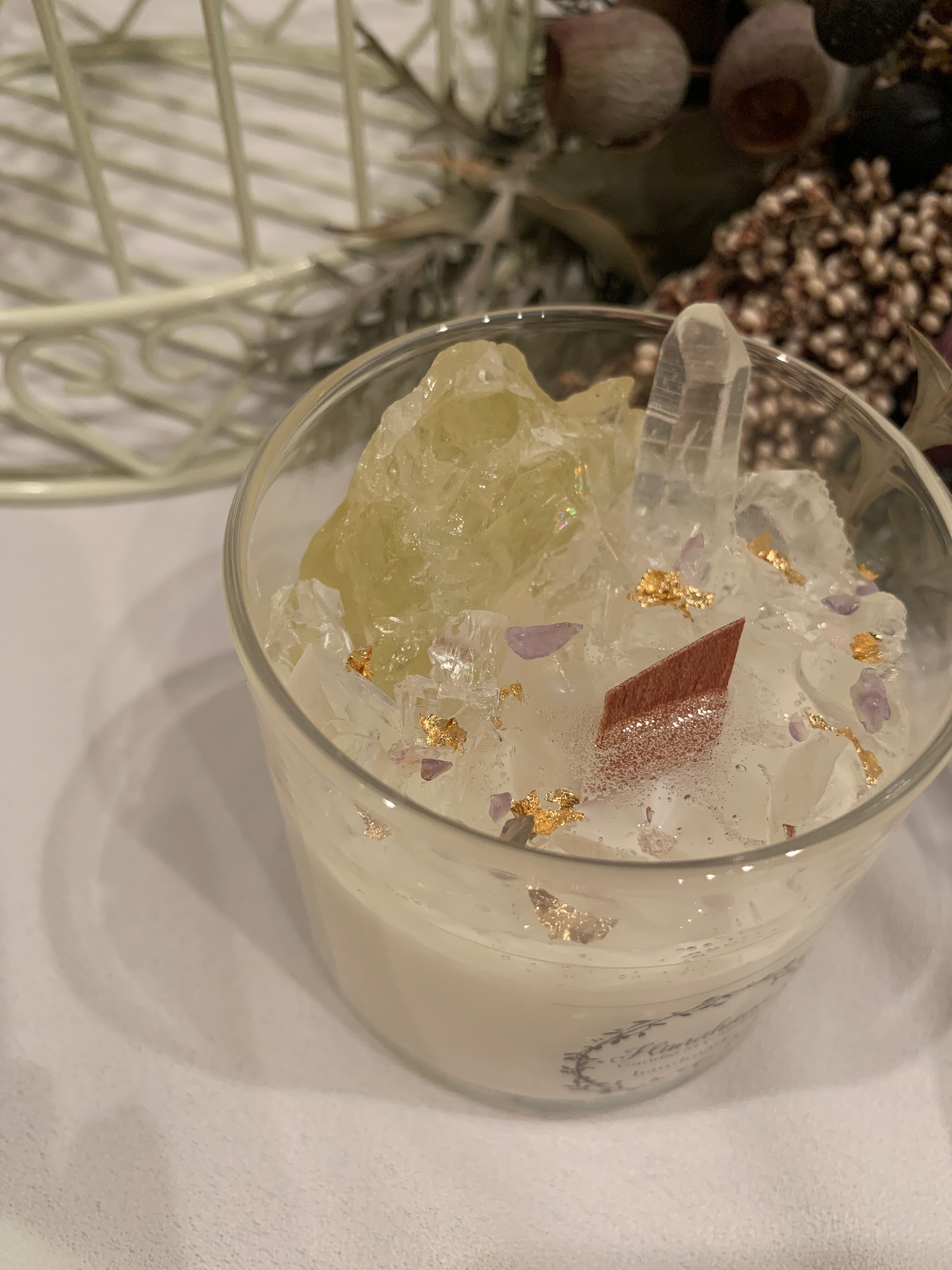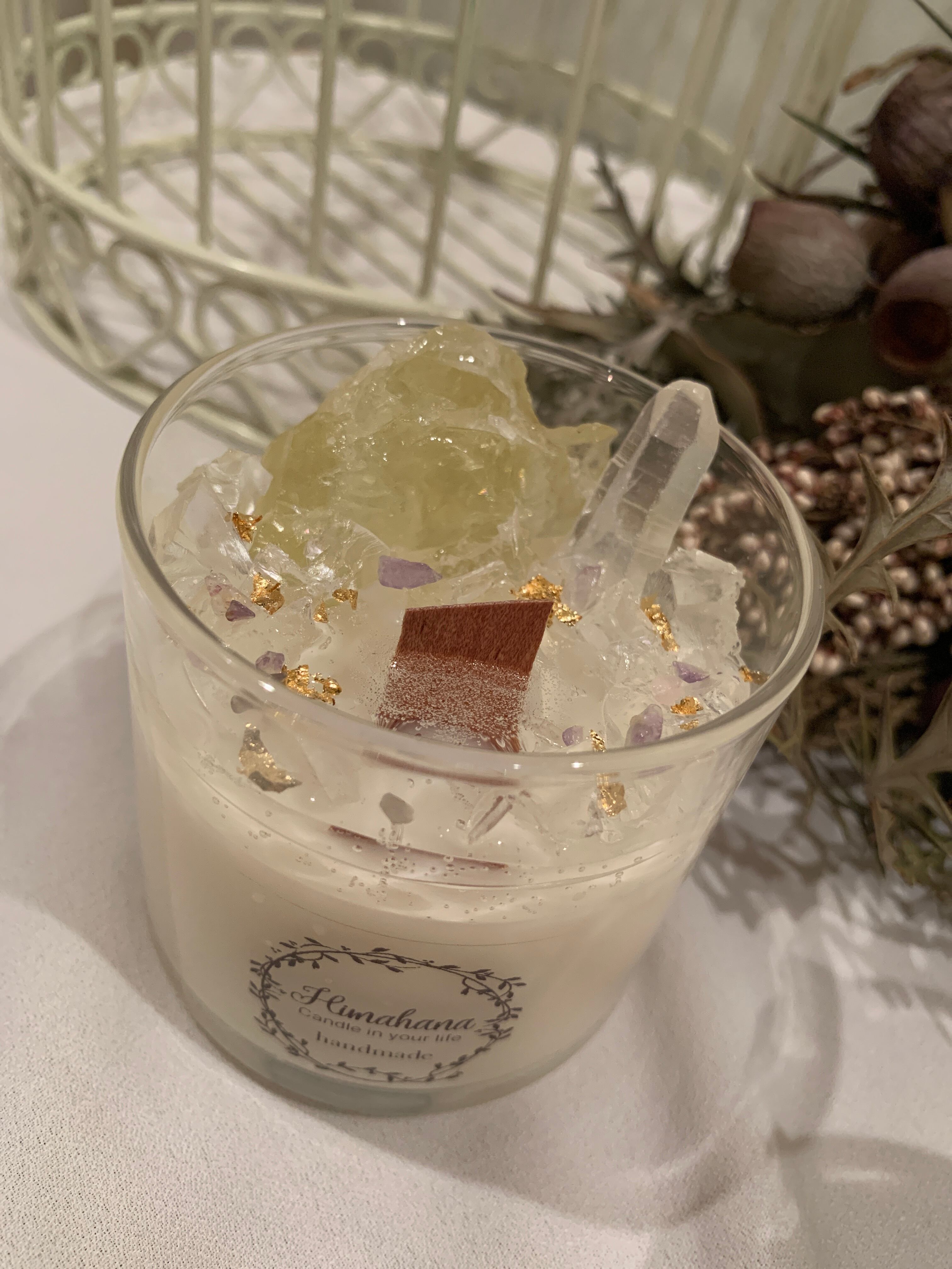 100%のソイキャンドルに、天然石をたっぷり詰め込みました♡