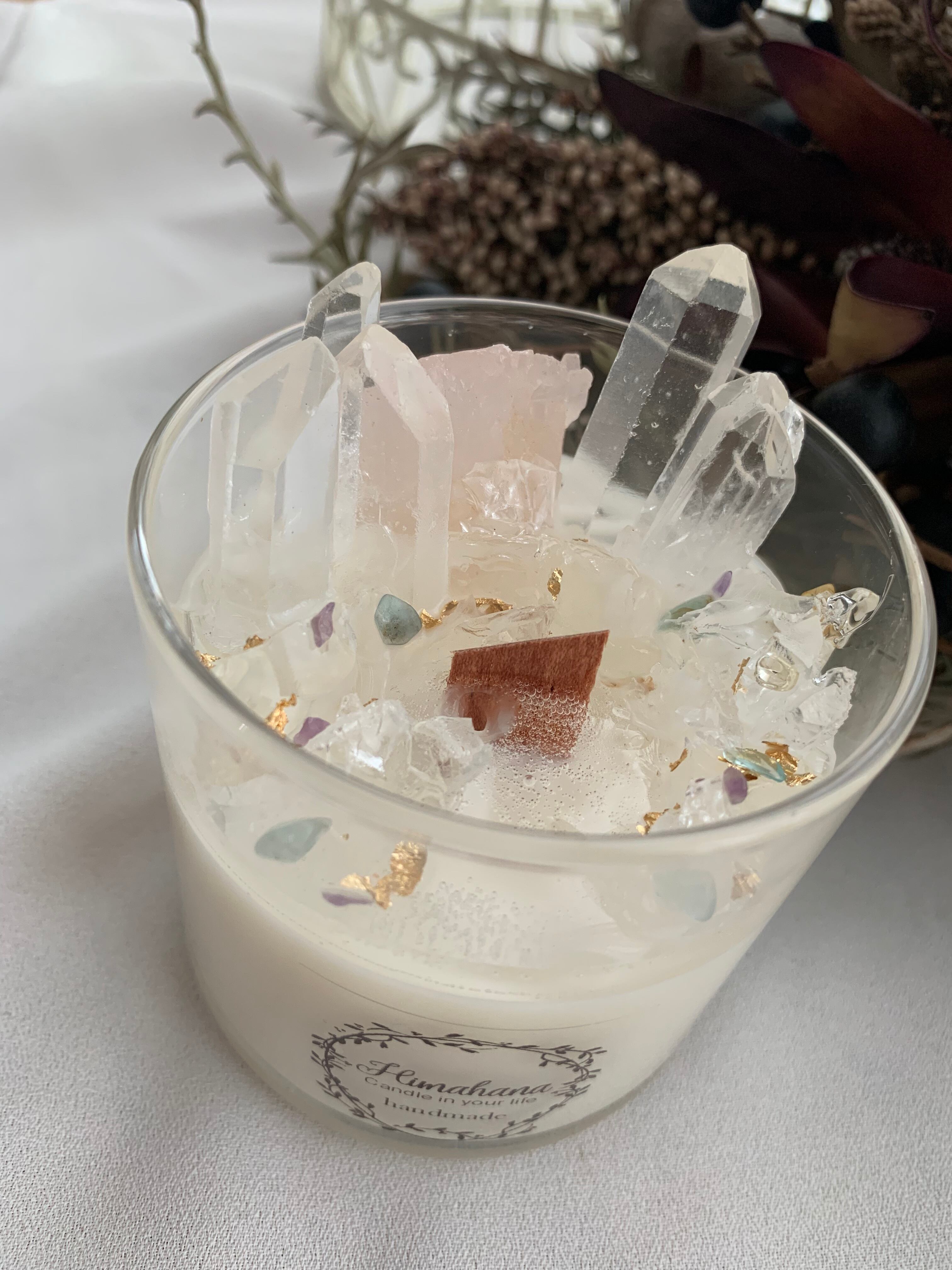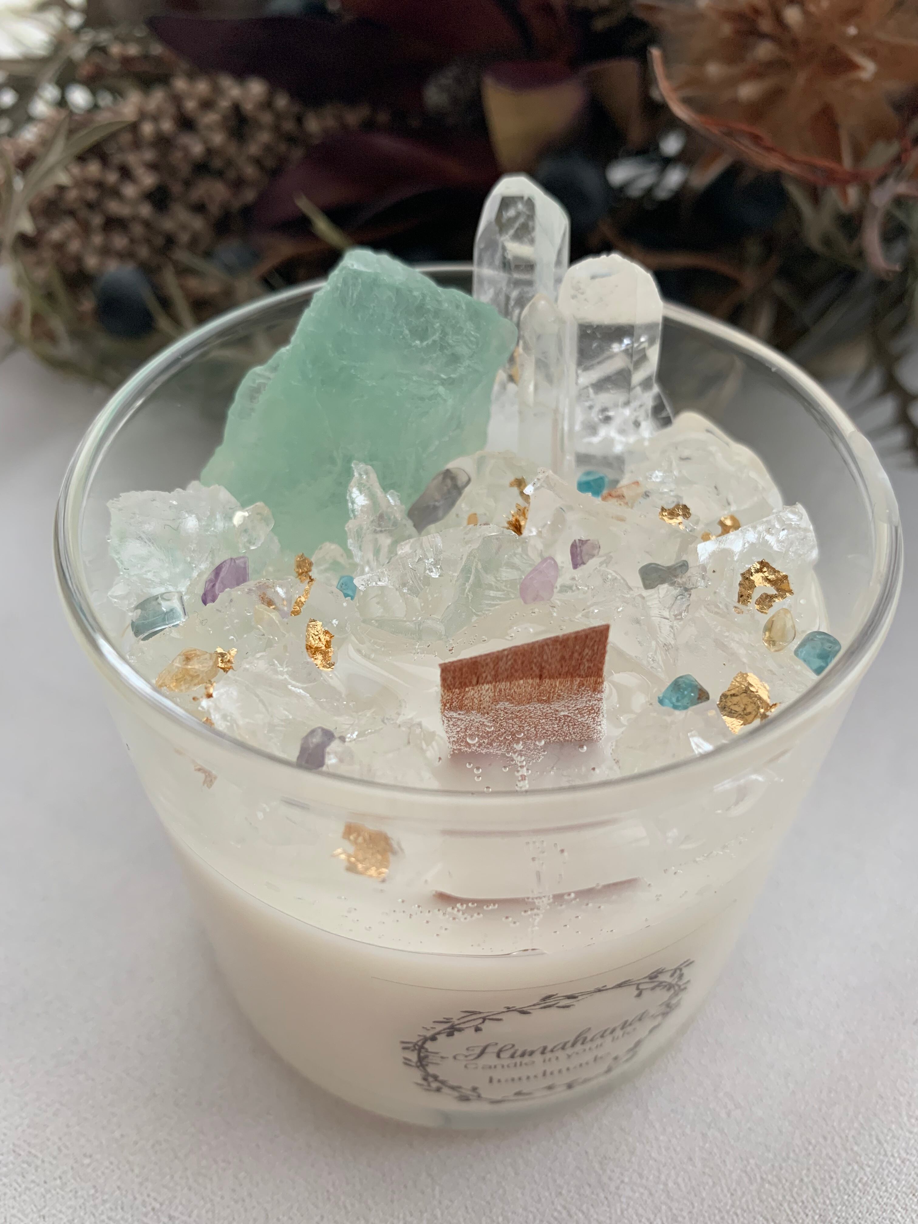 100%のソイキャンドルに、天然石をたっぷり詰め込みました♡