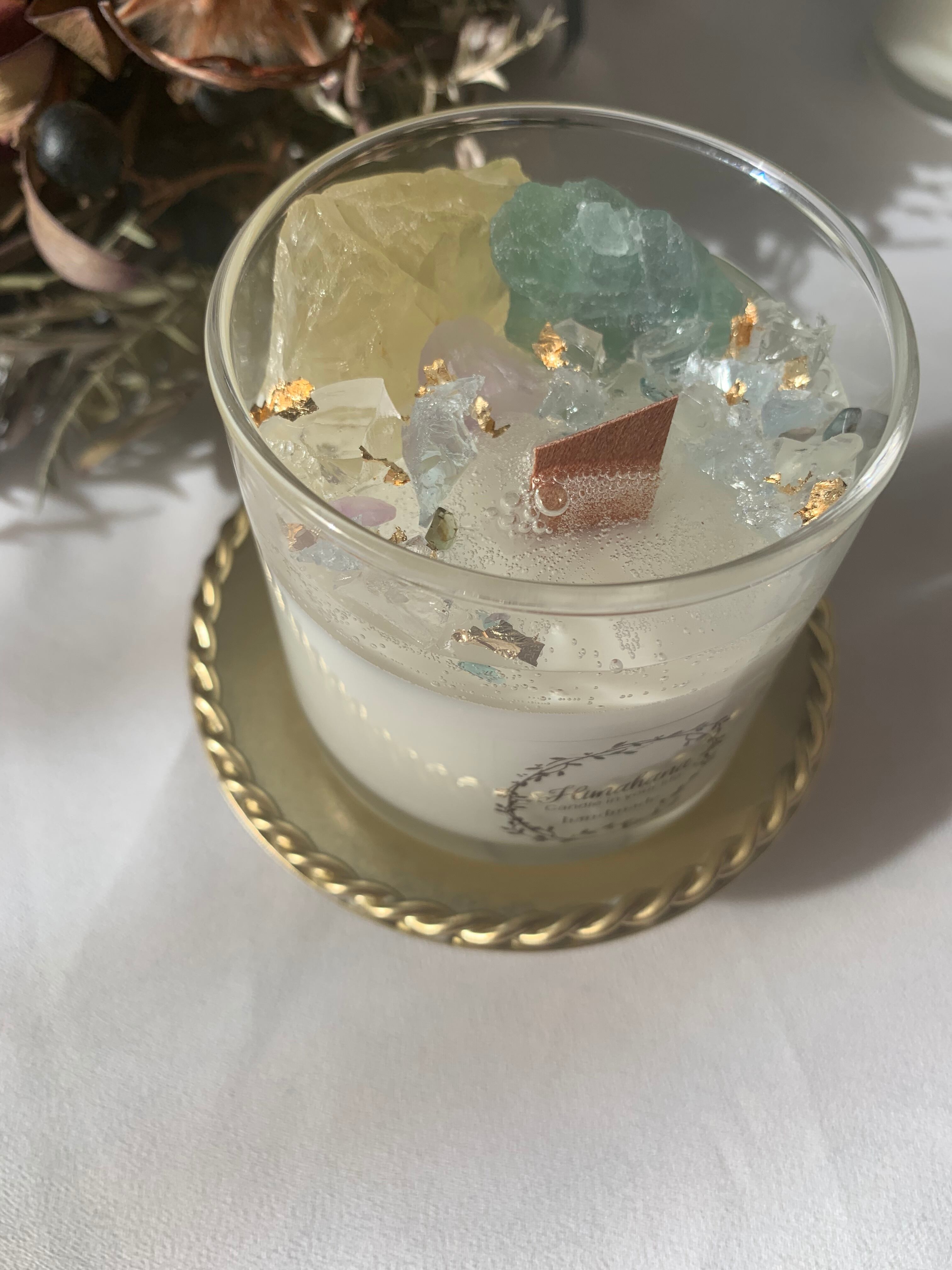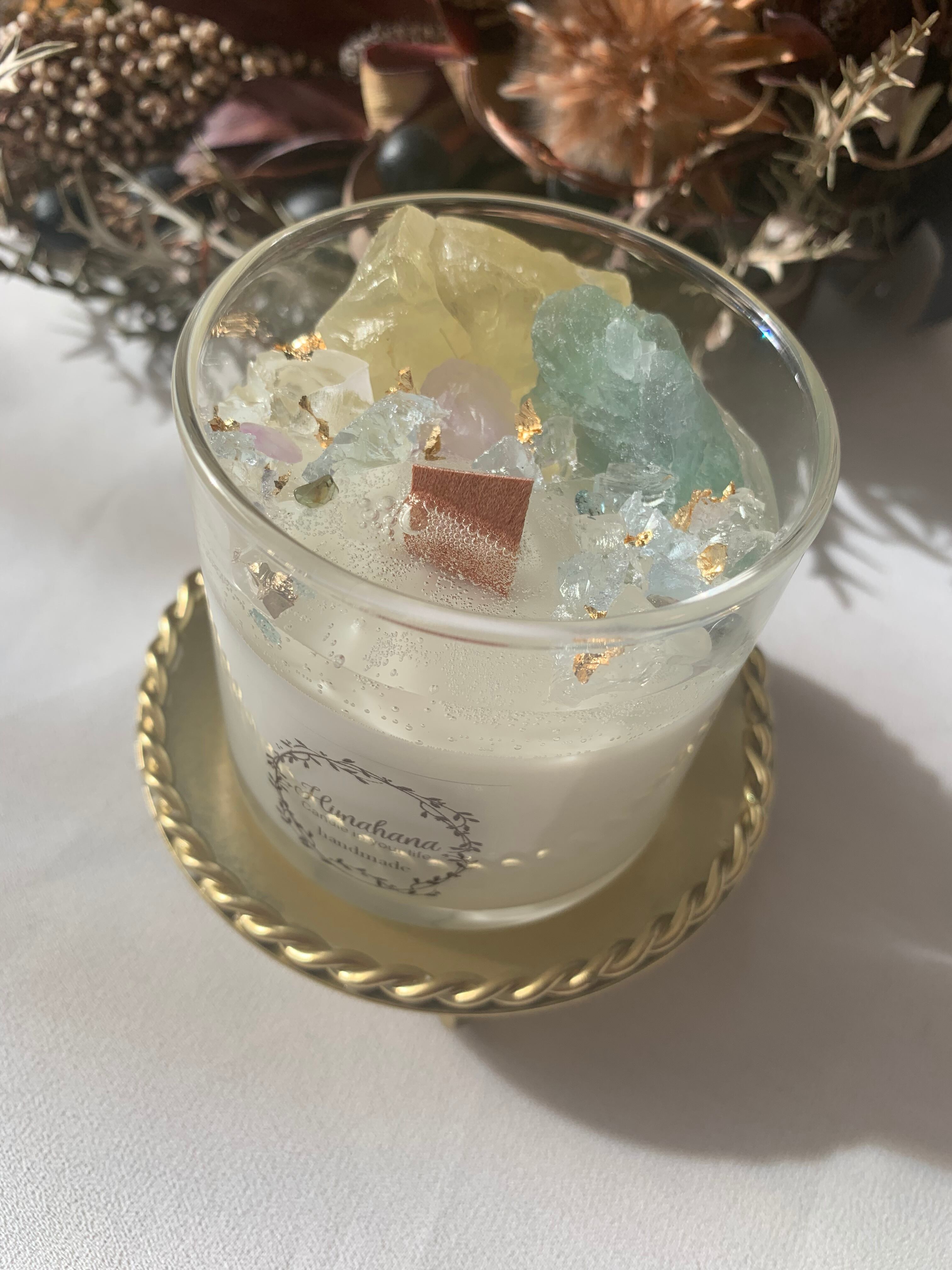 100%のソイキャンドルに、天然石をたっぷり詰め込みました♡