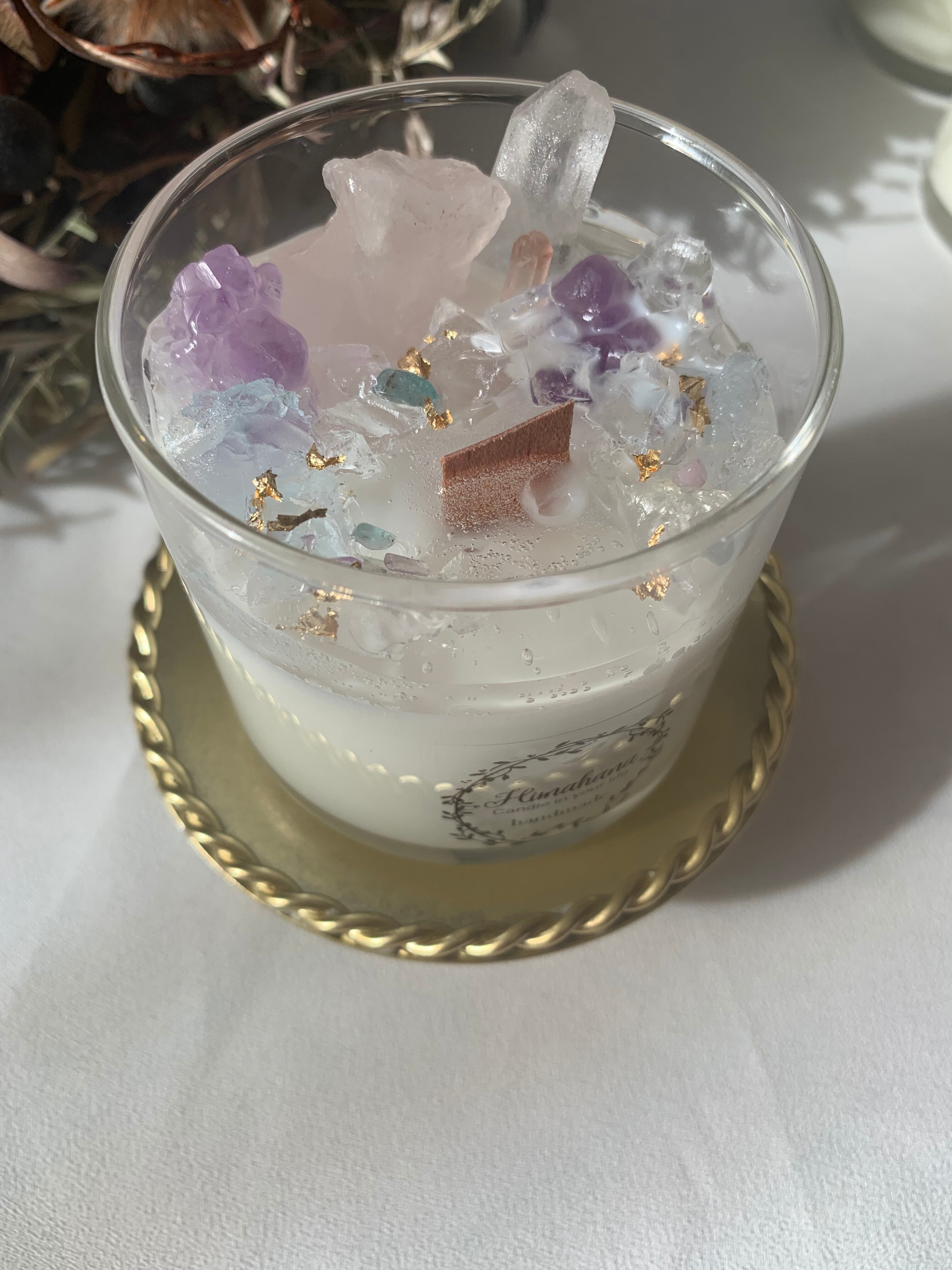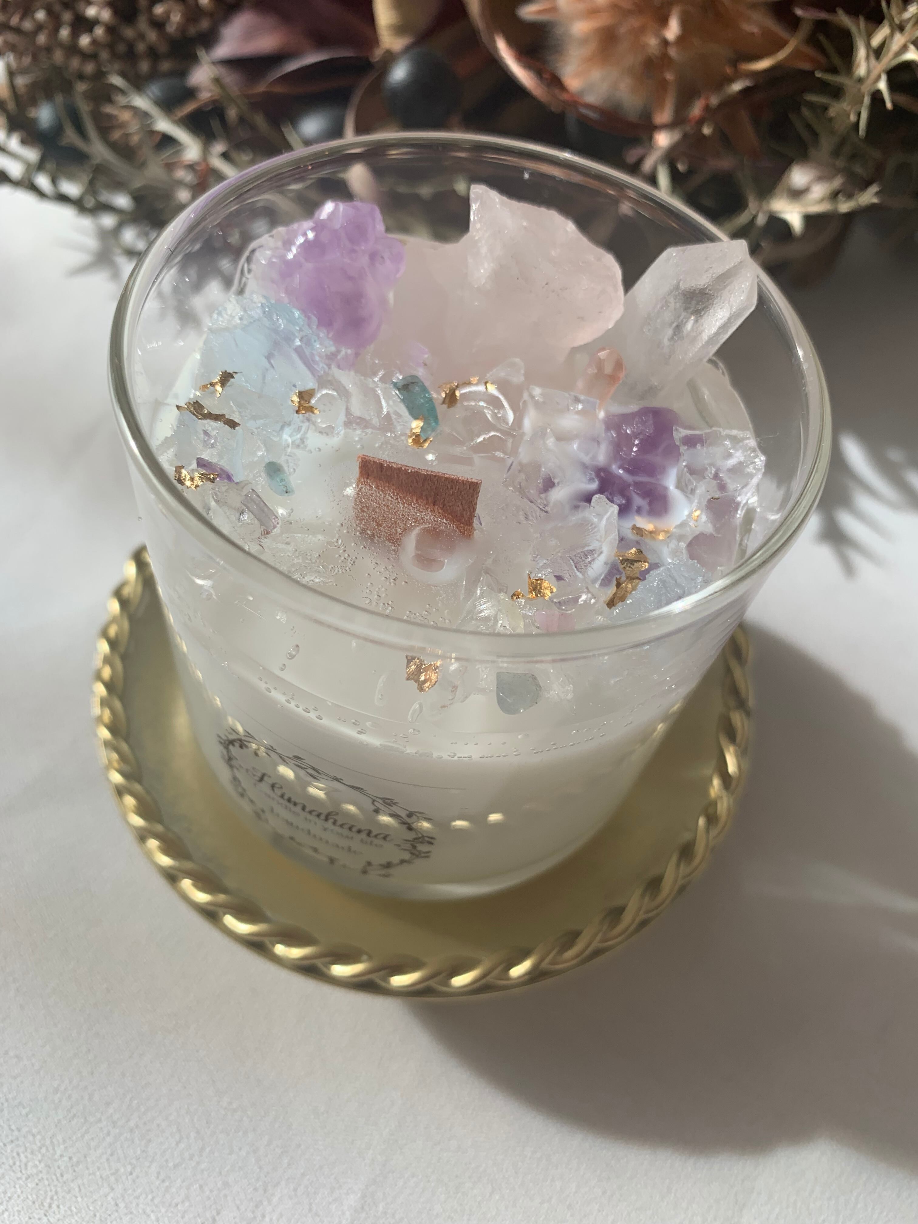 100%のソイキャンドルに、天然石をたっぷり詰め込みました♡