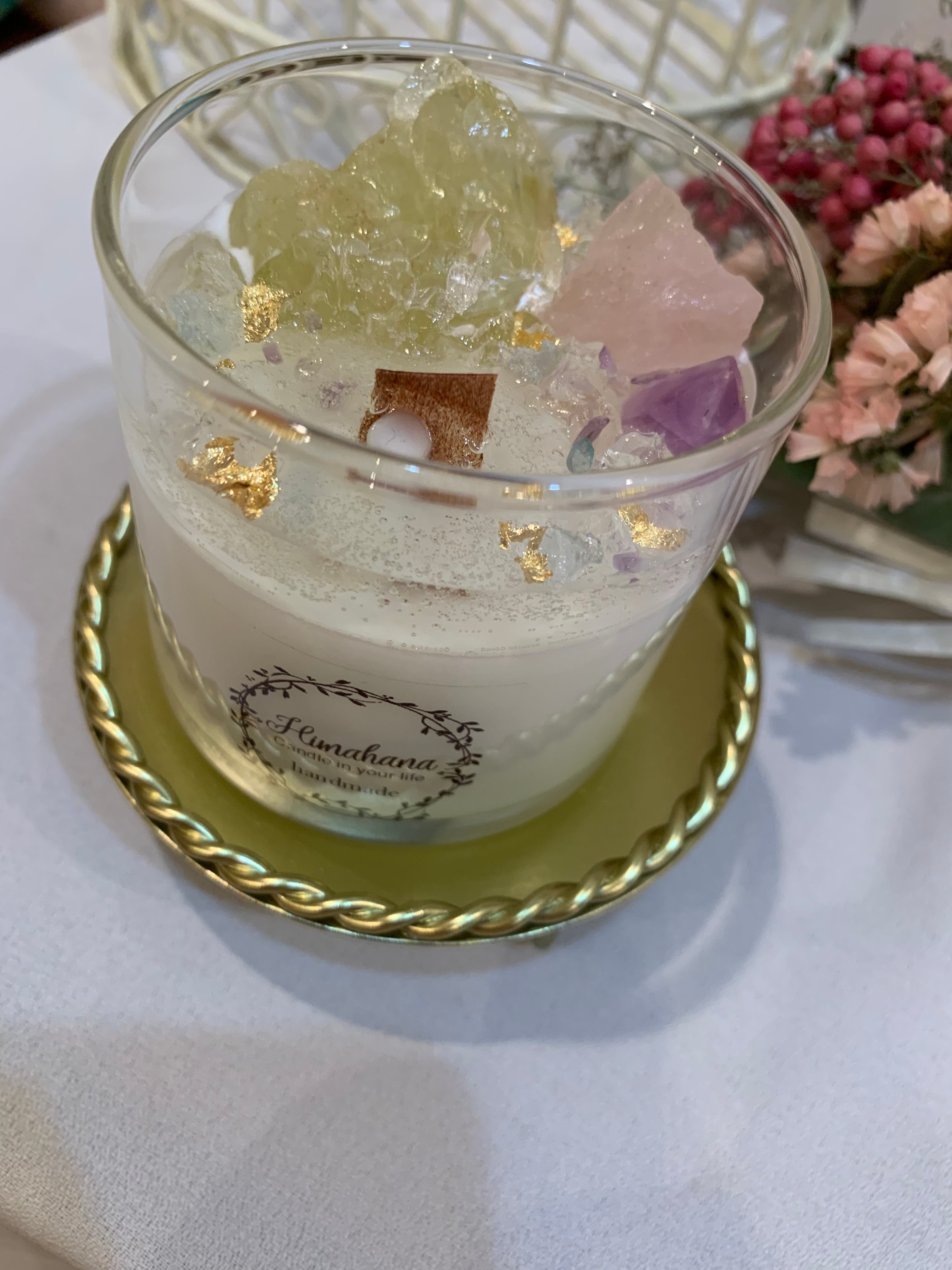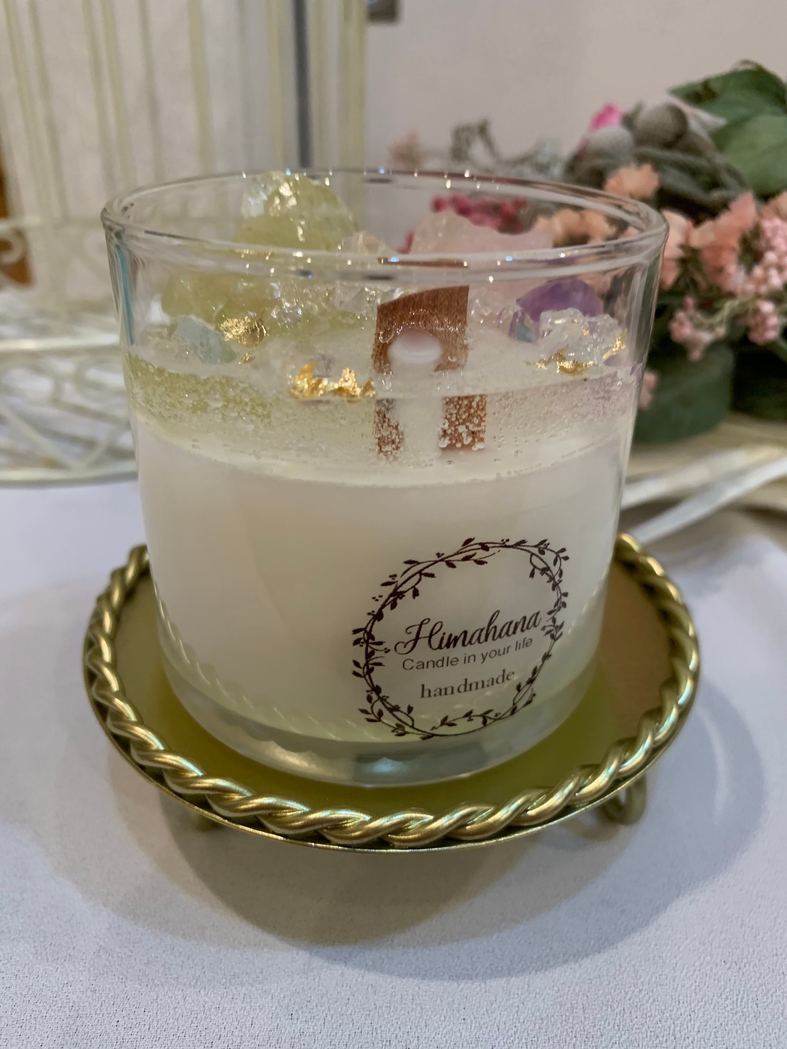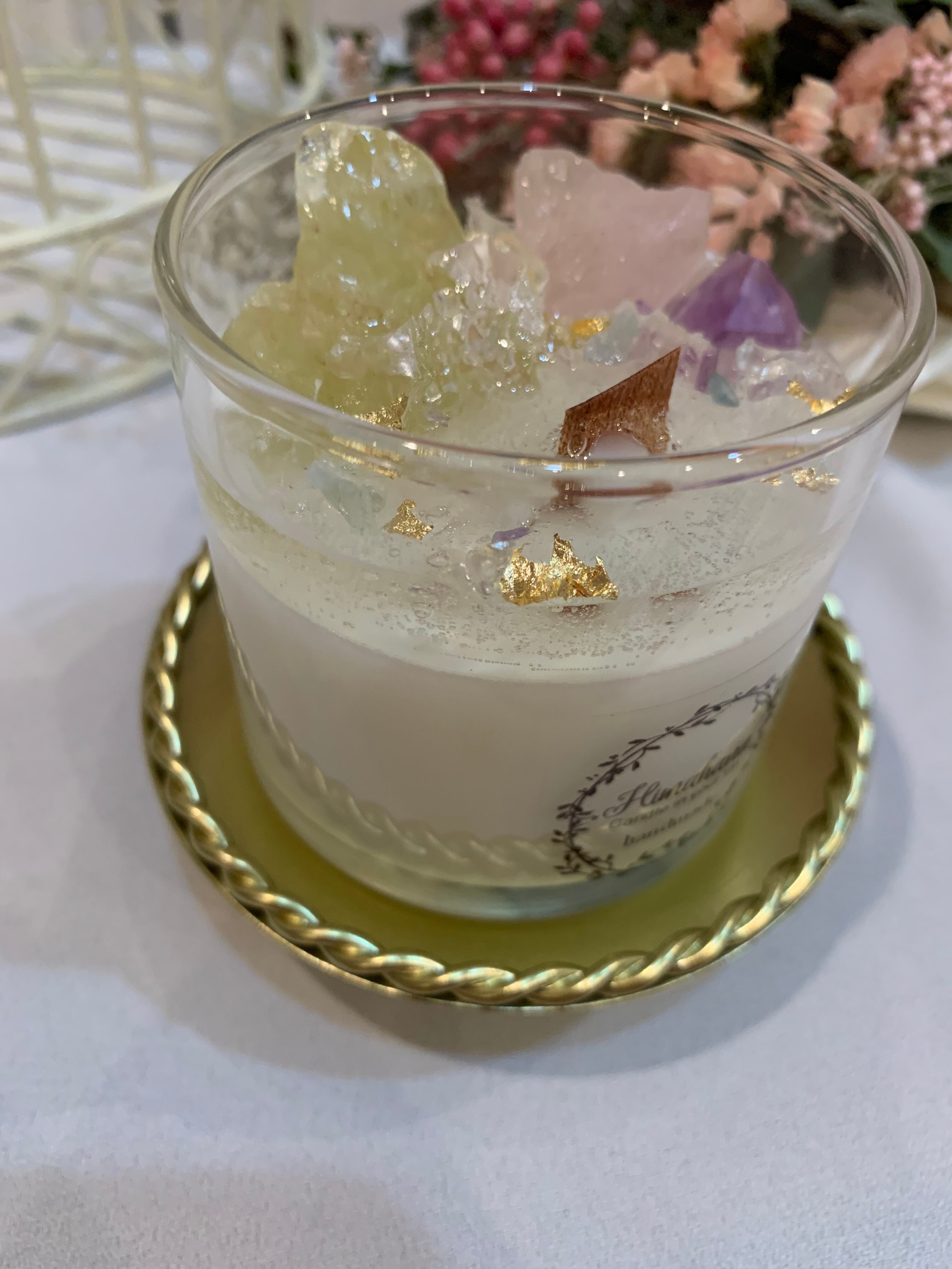 100%のソイキャンドルに、天然石をたっぷり詰め込みました♡