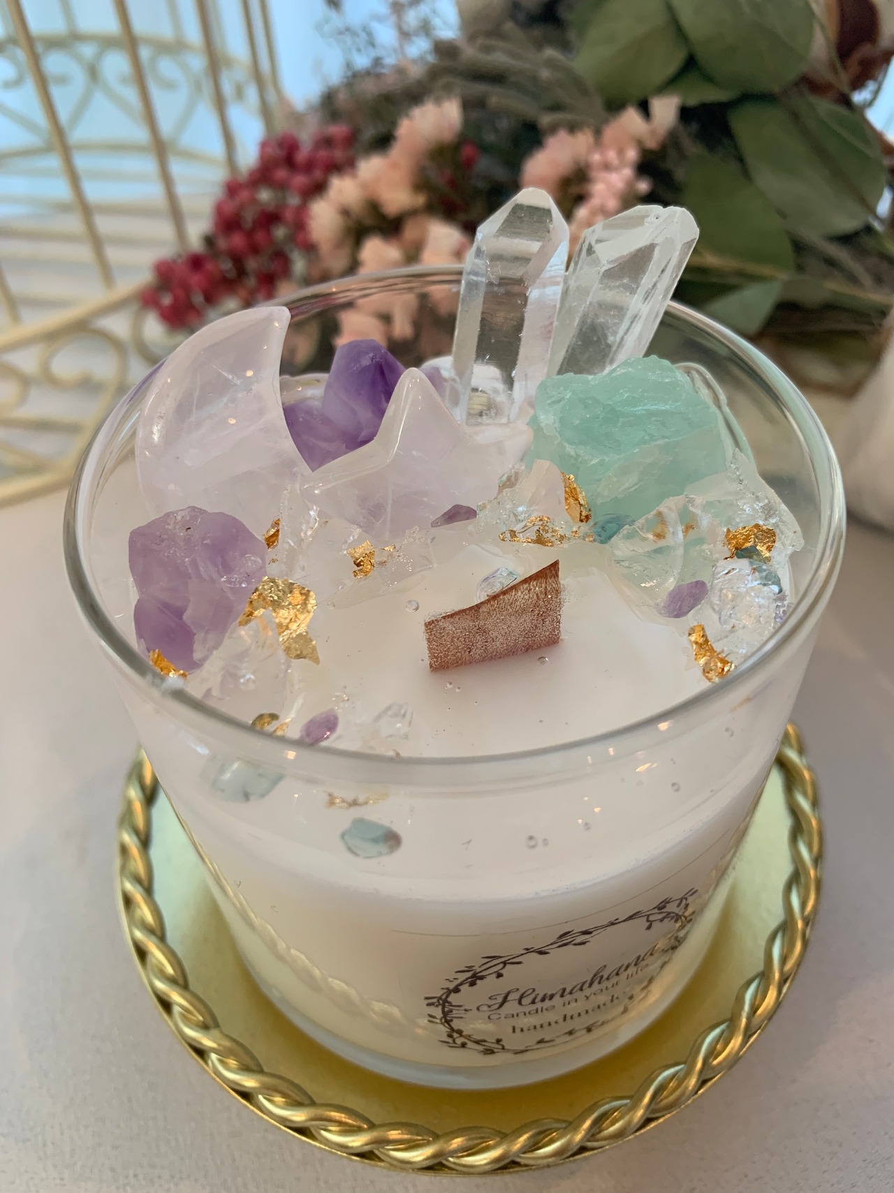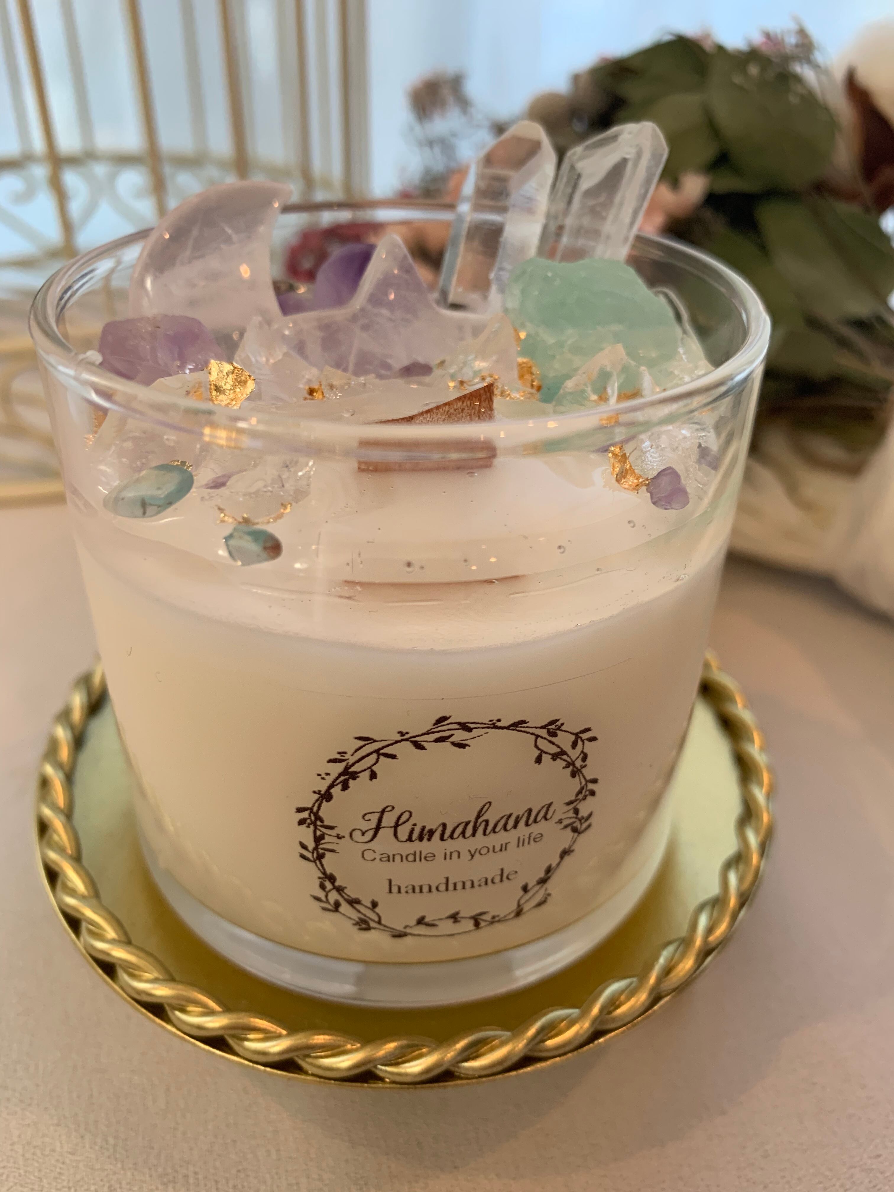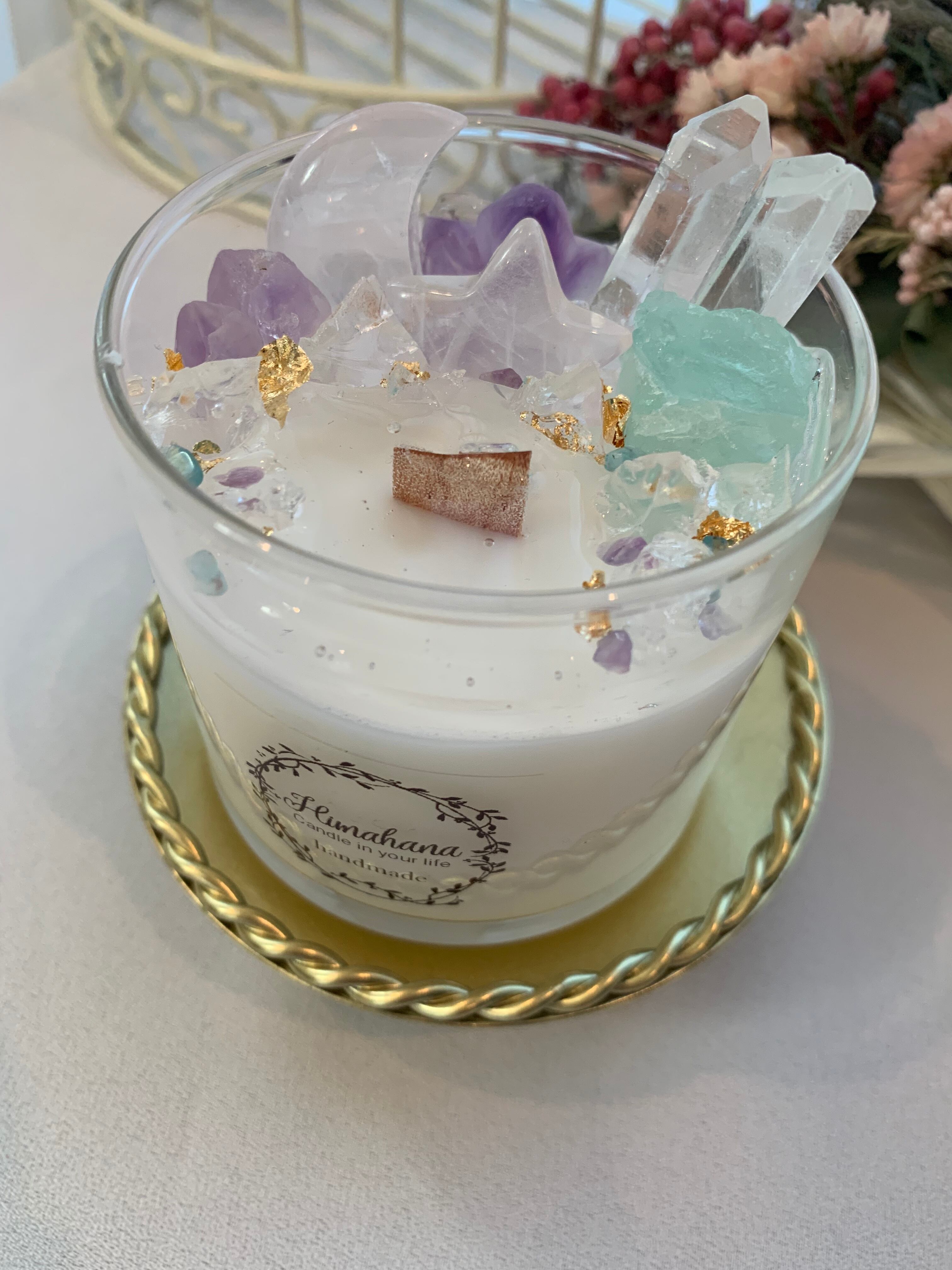 100%のソイキャンドルに、天然石をたっぷり詰め込みました♡