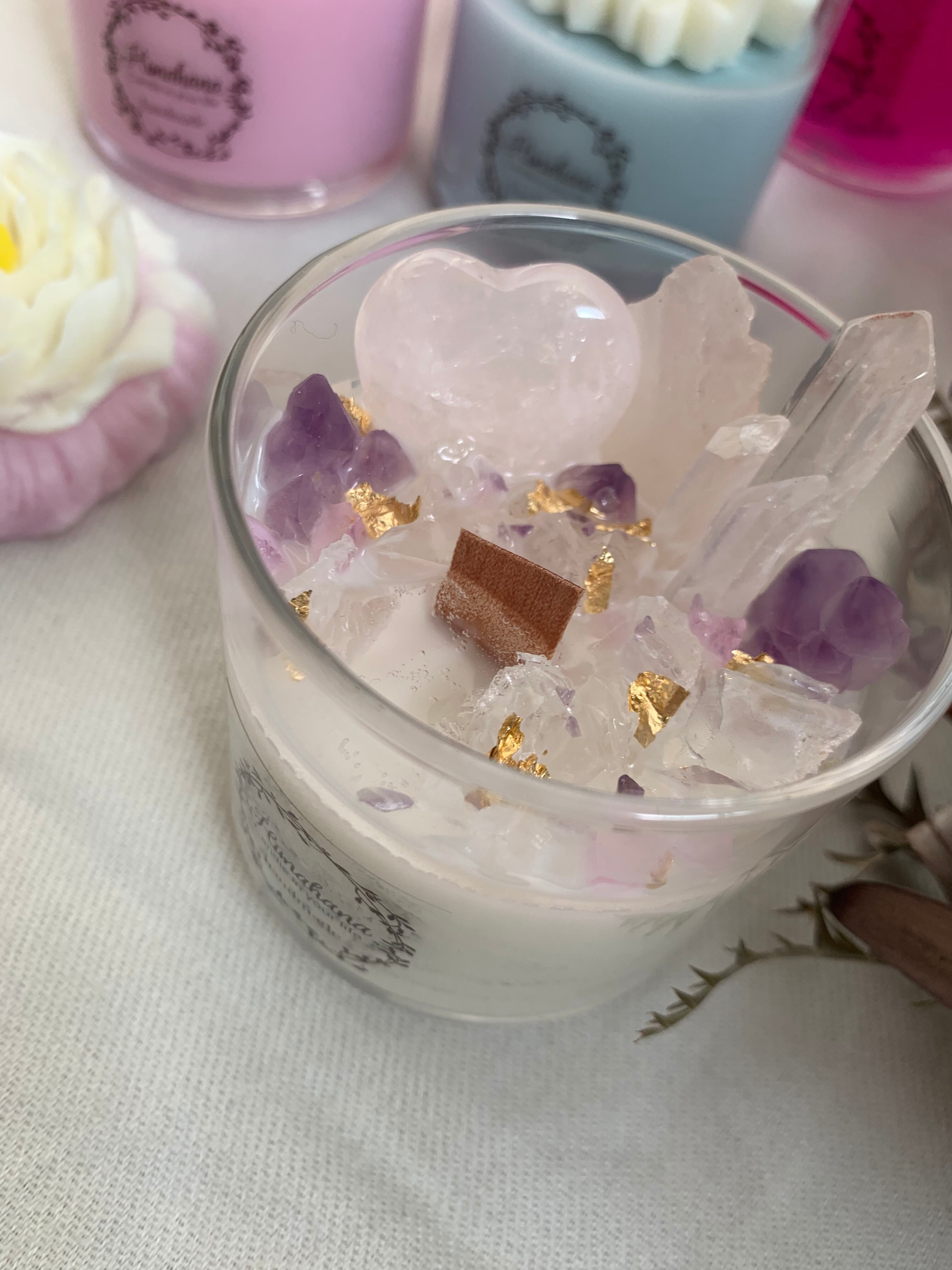 ソイキャンドルに、天然石をたっぷり詰め込みました♡