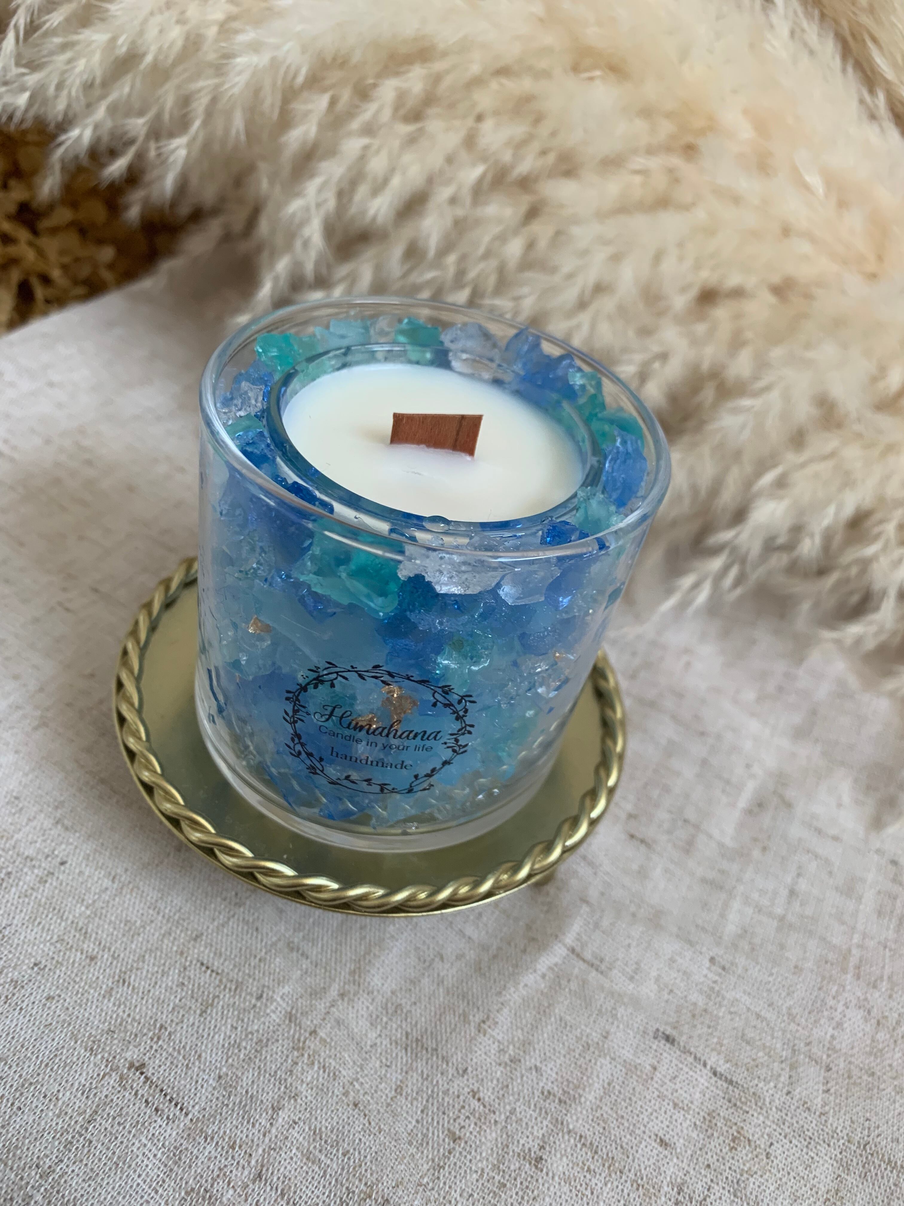 ブルーのステンドグラス風キャンドル